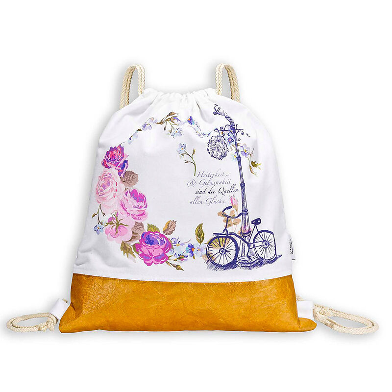 Beim Radfahren braucht man auf jeden Fall beide Hände frei da ist es praktisch, wenn alle wichtigen Dinge in einem Rucksack verstaut sind. In dieser Tasche aus robustem Baumwollstoff mit einem verstärkten Boden aus schickem Kraftpapier findet alles seinen Plat...