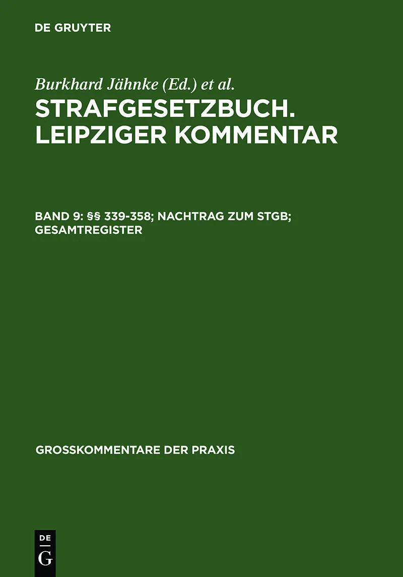 Frontmatter -- Verzeichnis der Bearbeiter der 11. Auflage -- Inhaltsübersicht -- Dreißigster Abschnitt. Straftaten im Amt -- § 339. Rechtsbeugung §345 Vollstreckung gegen Unschuldige -- § 348 Falschbeurkundung im Amt §355 Verletzung des Steuergeheimnisses -- §...