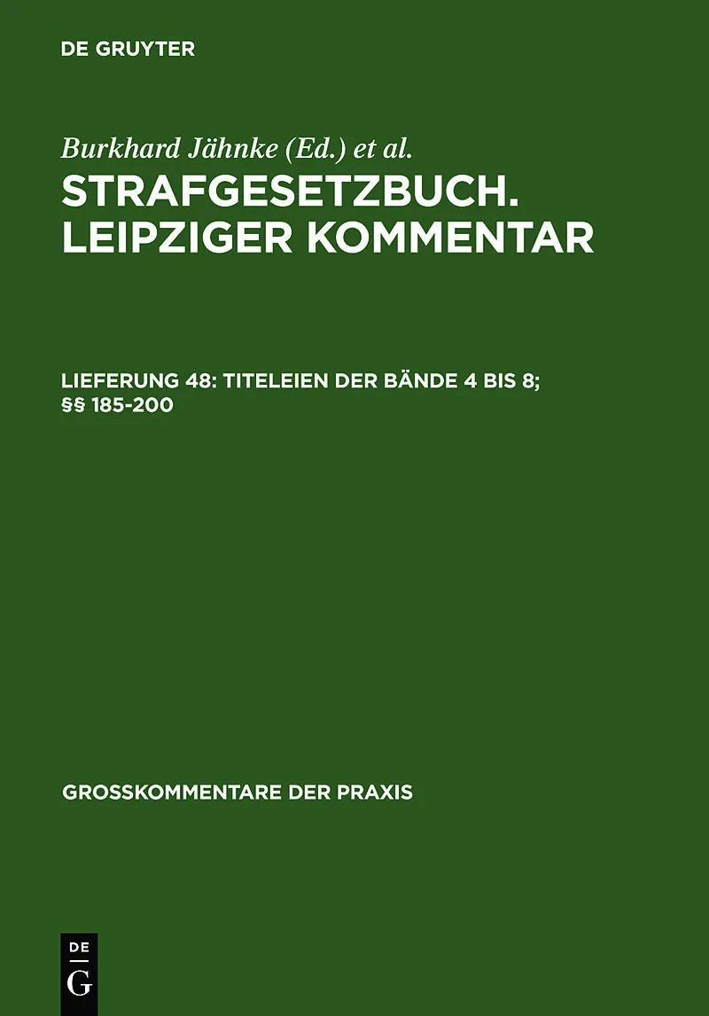 Keine ausführliche Beschreibung für "Titeleien der Bände 4 bis 8; 185-200" verfügbar. Frontmatter -- Verzeichnis der Bearbeiter der 11. Auflage -- Inhaltsübersicht -- Inhaltsübersicht -- ACHTER ABSCHNITT. Geld- und Wertzeichenfälschung -- VIERZEHNTER...