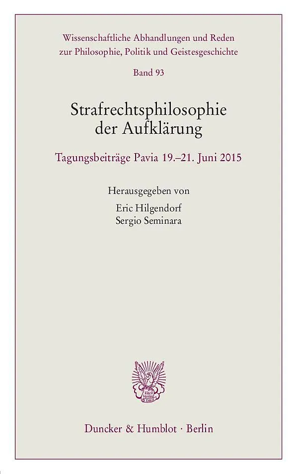 Der Band versammelt die Vortragstexte einer Tagung zur Strafrechtsphilosophie der Aufklärung, die im Juni 2015 von Sergio Seminara und Eric Hilgendorf in Pavia, dem Studienort Cesare Beccarias, veranstaltet wurde. Die Vorträge wurden für die Drucklegung überar...