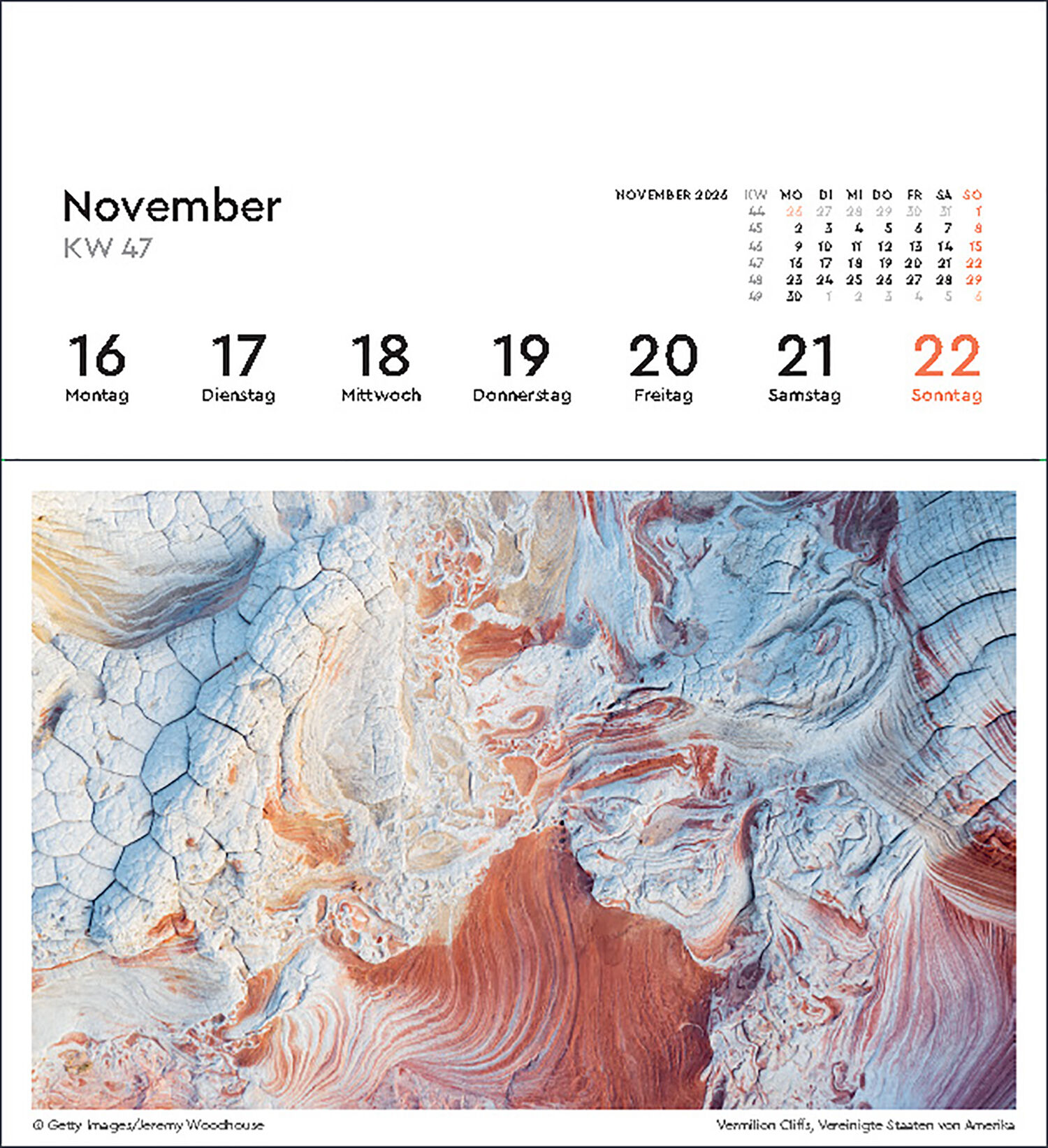 Woche um Woche begleitet dieser KUNTH Postkartenkalender Strukturen 2026 mit atemberaubenden Bildern durch das Jahr auf dem Schreibtisch oder als Hingucker an der Wand. Die Postkarten zum Herauslösen können dann als Gruß versendet werden. Welch wundersame Str...
