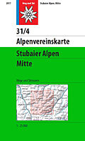 Topographische Karte 1:25.000, mehrfarbig, mit Wegmarkierungen, Bushaltestellen, Schummerung, Felszeichnung, Gletscherdarstellung, Kennzeichnung der Klettersteige, UTM-Gitter. Gebiet: Zentrale Stubaier Alpen von Praxmar im Norden bis Mutterberg/Stubaital im Sü...