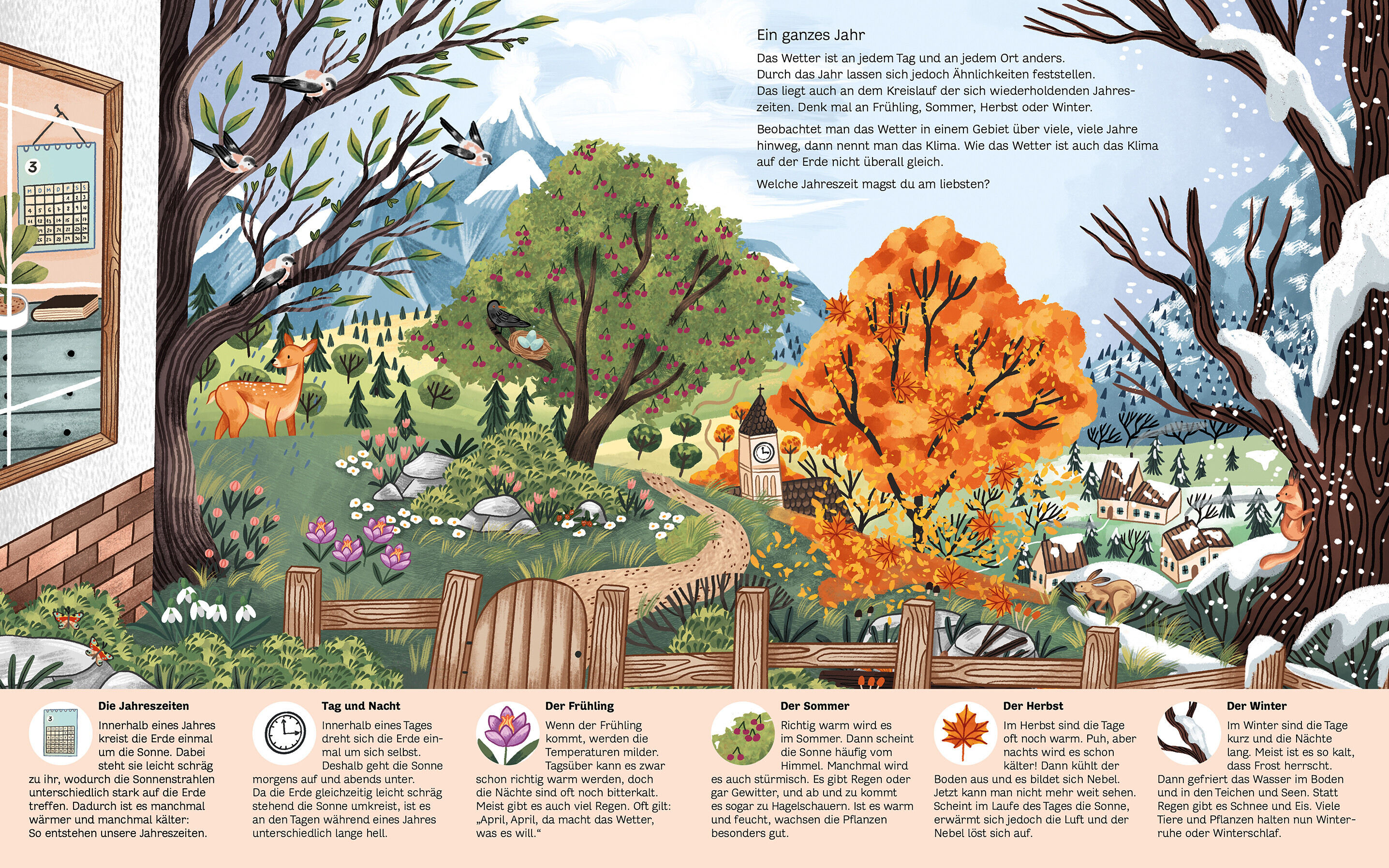 Ein interaktives Bilderbuch mit spannenden Suchbildern über das Wetter und seinen Einfluss auf Tiere und Natur. Wie entsteht ein Blitz? Wie kühlen sich Rothirsche bei Hitze ab? Und wer lebt eigentlich in einer Pfütze? Das Wetter hat nicht nur große Auswirkung...