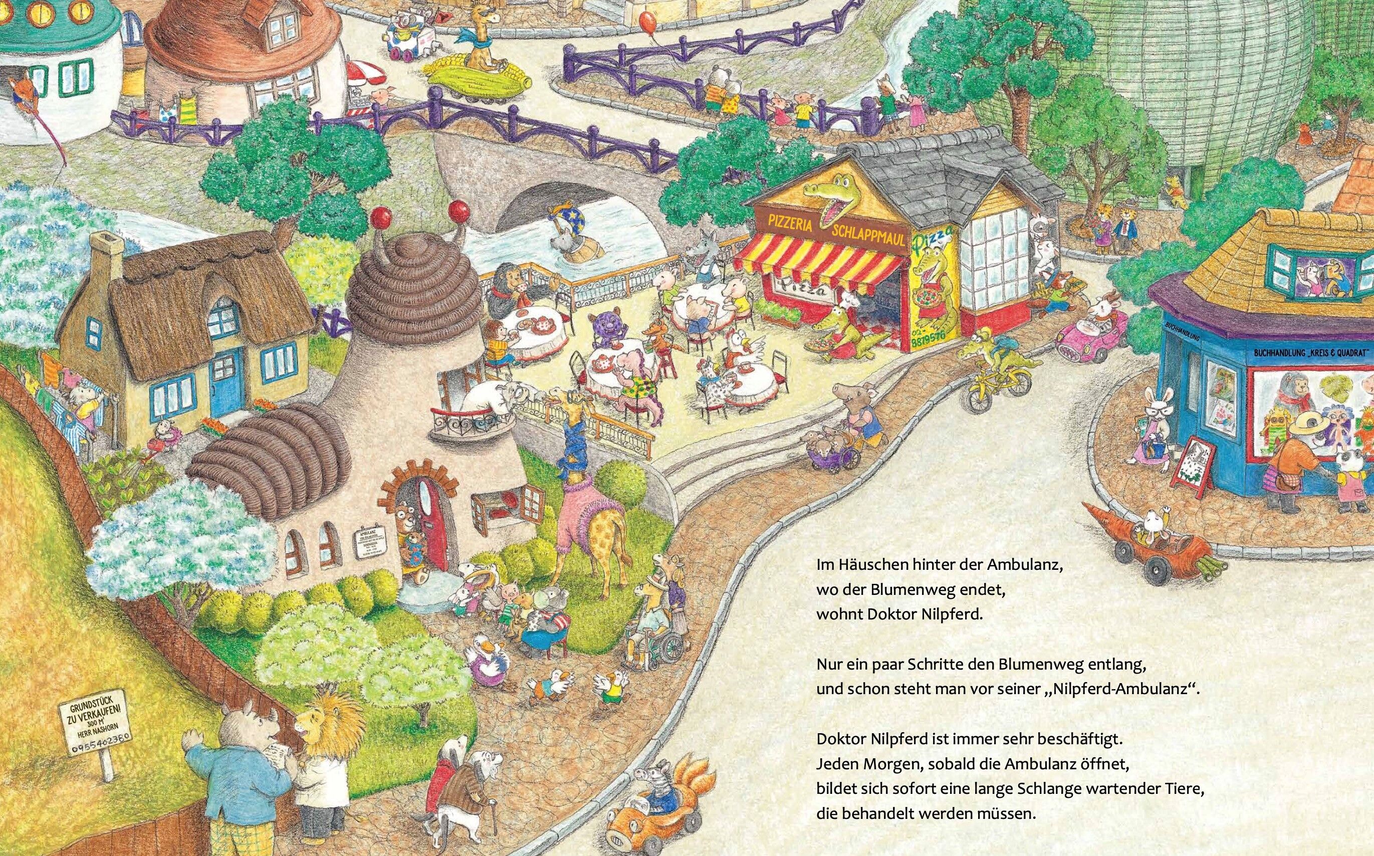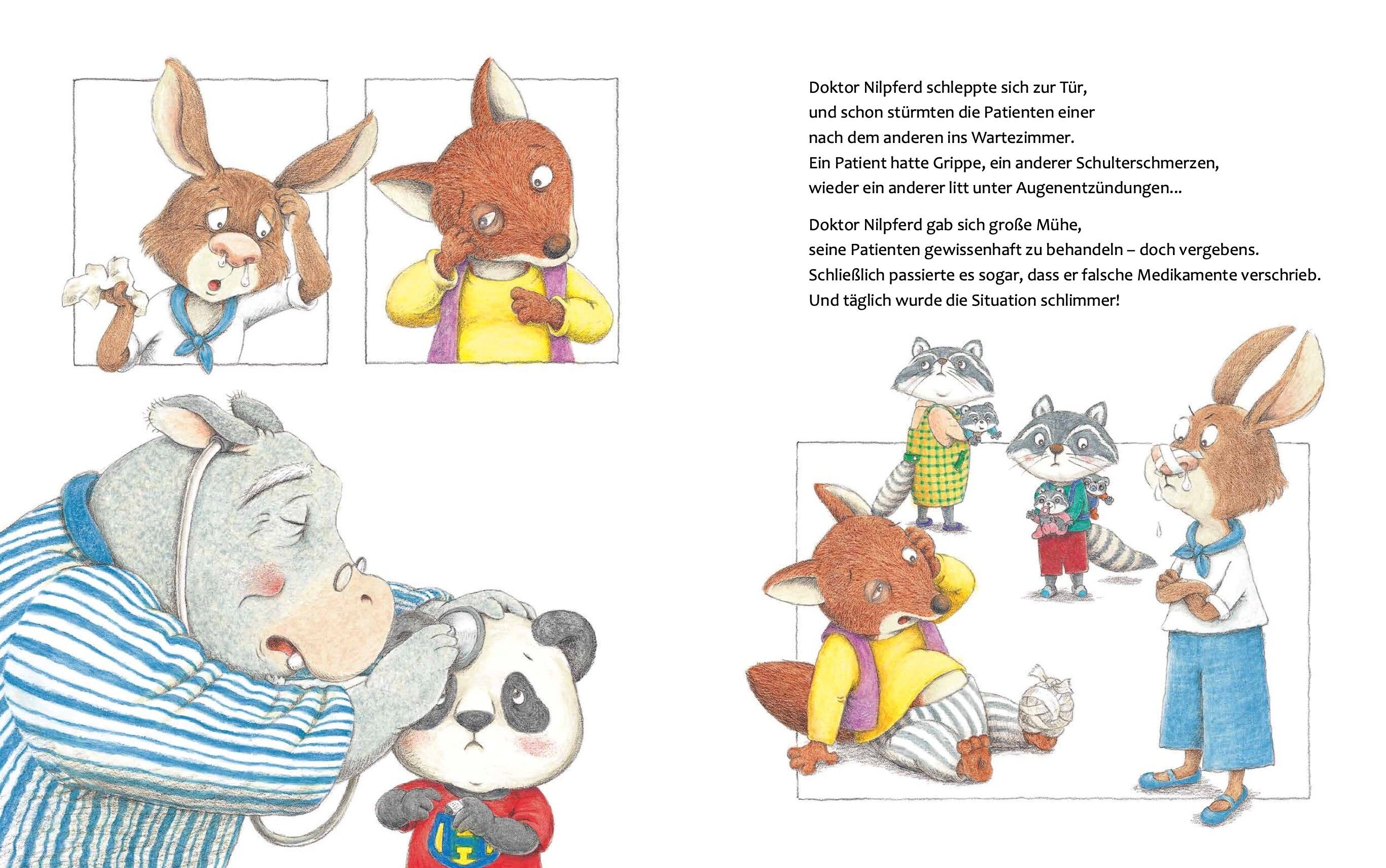 Im Jahr 2009 erfuhr ich von einer Freundin, dass in der Grundschule Hsin Tai in der Nähe der Hauptstadt Taipeh, eine Spielzeugklinik eröffnet worden war die erste und wohl einzige in ganz Taiwan. Zusammen mit meiner guten Freundin, die auch die Illustratorin dieses Buches ist, besuchten wir diese Grundschule in New Taipei City. Der Chefarzt für kranke Spielzeuge, Dr. Tang, war damals bereits über 70 Jahre alt. Er erzählte uns eine faszinierende Geschichte über die Entstehung der Spielzeugklinik.Rund 40 Freiwillige Großeltern von Schülern der besagten Grundschule arbeiteten dort. Alle waren bereits im Ruhestand. Sie erzählten, dass sie sich nur schwer an ein Leben ohne Arbeit gewöhnen konnten. Es fühlte sich an, als hätten sie ihren Lebensmittelpunkt verloren, als sie plötzlich nichts mehr zu tun hatten. Dr. Tang überzeugte die Großeltern, gemeinsam etwas Schönes für die Kinder zu schaffen. So entstand die Idee, eine Spielzeugklinik zu eröffnen, in der sie kaputtes Spielzeug reparieren konnten.Die Omas und Opas waren Experten auf den Gebieten, in denen sie ihr Leben lang gearbeitet hatten. Sie hatten sehr geschickte Hände: Die Omas konnten nähen und die Opas beherrschten verschiedene Werkzeuge wie Profis. Für die Schule bauten sie aus Abfallmaterialien auch viele neue Spielzeuge allein mit ihrer Fantasie. Die Reparatur der Spielzeuge und die Zeit mit den Kindern, gaben ihrem Leben einen neuen Sinn. Von 2009 bis 2013 schrieb ich die Geschichteüber die Spielzeugklinik, doch ich überarbeitetesie viele Male.Frau Hao ist eine hervorragende Illustratorin,die mit ihren Bildern die Geschichte bereicherte.Ein Beispiel ist das Grundstück neben dem Häuschen von Opa Flusspferd im Text wird nicht erwähnt, dass es zum Verkauf steht. Doch gleich auf der ersten Seite der Illustration sieht man, dass der Löwe das Grundstück gekauft hat und die Leser erfahren später, dass er dort ein Häuschen gebaut hat.Das Genie der Illustratorin zeigt sich auch darin,dass sie vier Porträts der Helfer nach berühmten Kunstwerken gestaltete: Oma Panda ist ein Porträtder japanischen Künstlerin Yayoi Kusama, Onkel Fuchsstellt den französischen General und Politiker Napoleondar, der Elefant ist der niederländische Maler Vincentvan Gogh und Tante Waschbär ist die Mona Lisa die berühmte Frau aus dem Gemälde von Leonardo da Vinci.Die Illustratorin brauchte drei Jahre, um die Bilder fürdieses Buch zu erschaffen. Wir wünschen uns, dassdie Leser lernen, den Wert und die Bedeutung älterer Menschen zu erkennen. In Taiwan nennen wir ältere Menschen oft Schätze mit silbernem Haar. Mansollte sie von Herzen wertschätzen und respektieren.