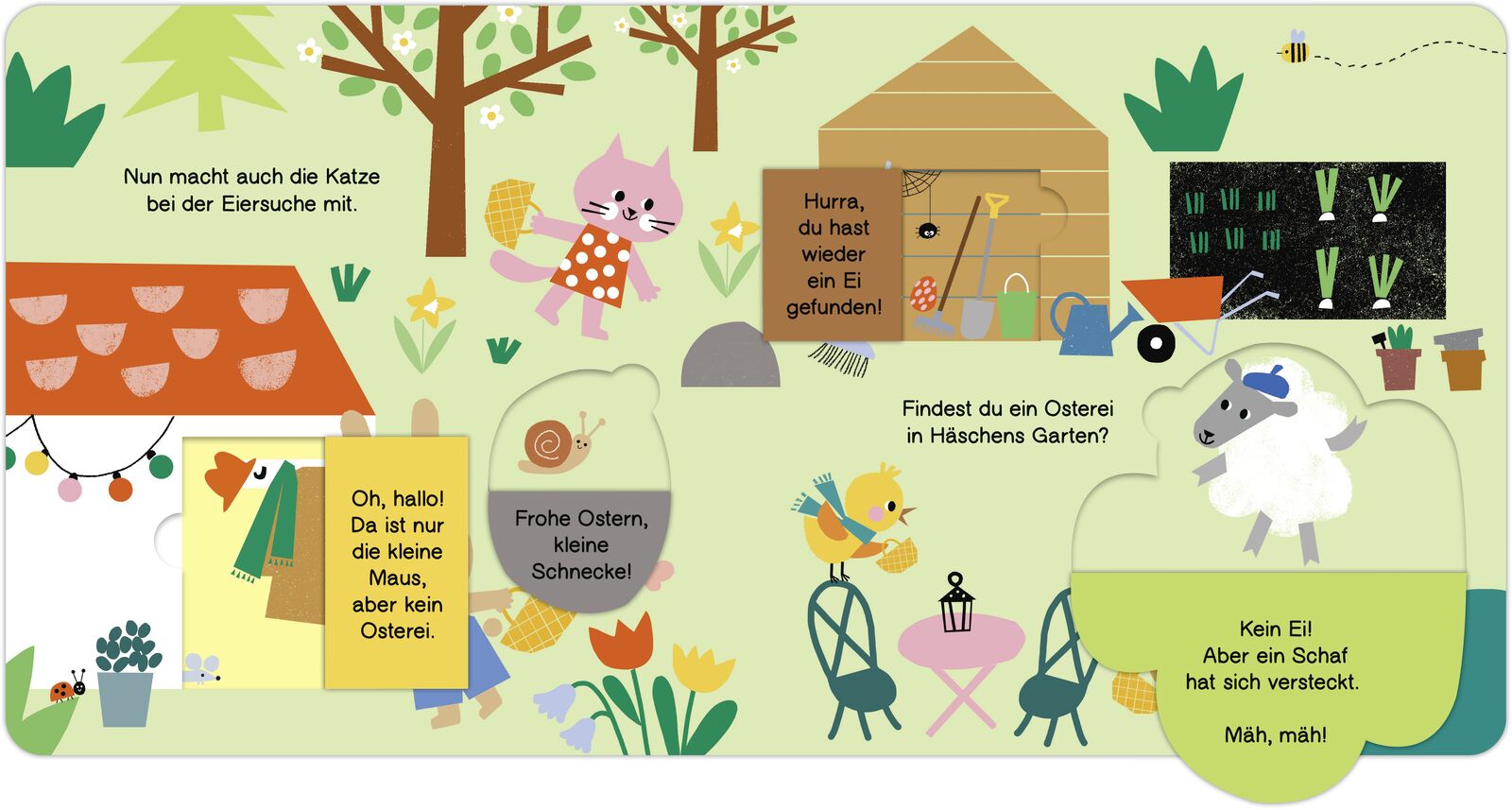 Kunterbuntes Osterbuch mit 22 Klappen! Heute ist ein aufregender Tag für den kleinen Hasen! Es geht auf große Osterei-Sucherei und Küken, Ente und Schäfchen helfen mit. Hinter 22 Klappen sind die bunten Ostereier versteckt und manchmal entdeckt man auch eine ...