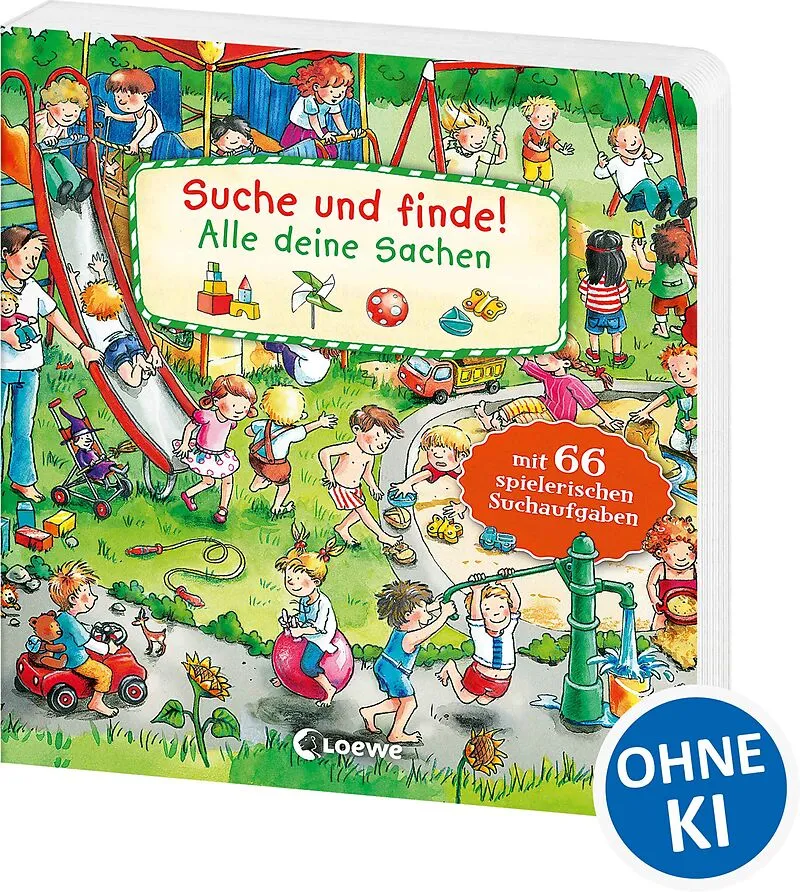 Loewe-Bücher: garantiert ohne KI Toll, was es hier alles zu entdecken gibt! Auf dem Frühstückstisch, beim Planschen in der Badewanne oder im Kinderzimmer. Kindgerechte Suchaufgaben unterstützen die Kleinen beim Wiedererkennen wichtiger Gegenstände aus ihrer Al...