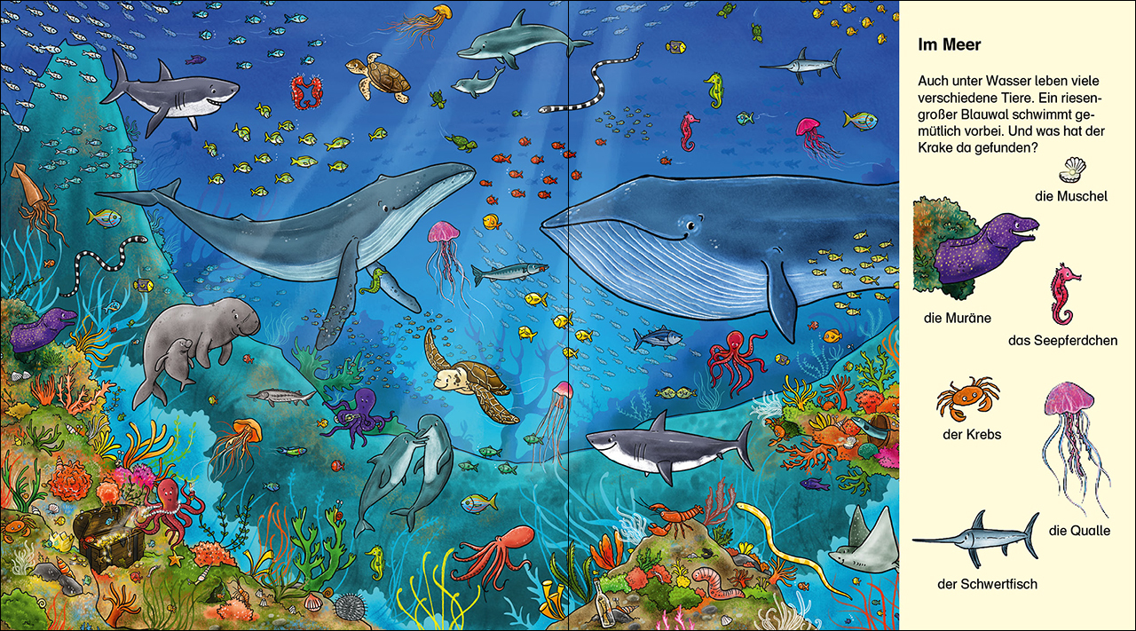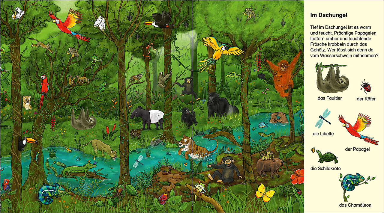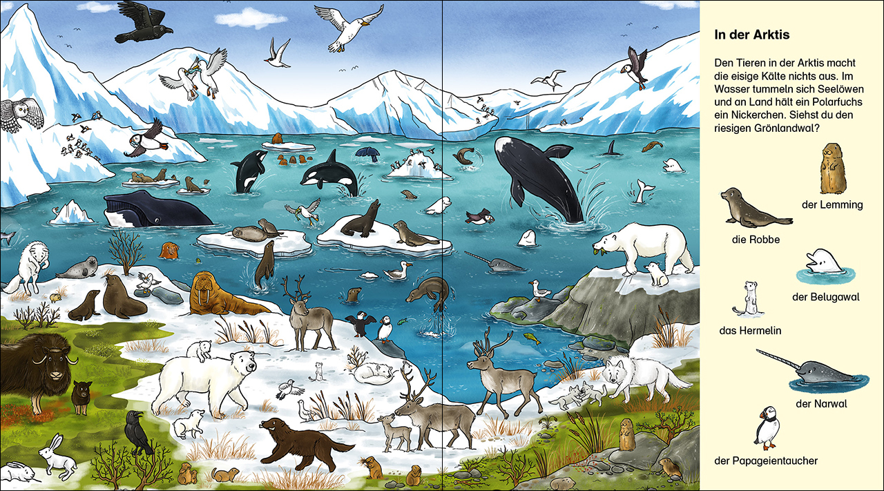 Entdecke dir Vielfalt der Tierwelt! Komm mit auf eine Reise quer durch die verschiedenen Lebensräume unserer Erde. Vom tropischen Regenwald bis zur arktischen Eislandschaft: Überall gibt es Neues zu entdecken! Zum Suchen, Entdecken und Weitererzählen Lebendige...