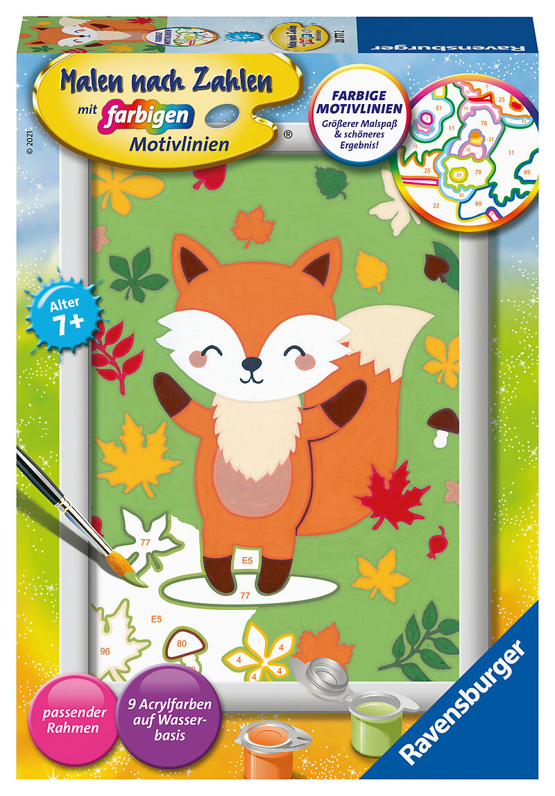 Farbige Motivlinien: Größerer Malspaß & ein schöneres Ergebnis! Dank der farbigen Motivlinien, können die Kinder das ganze Motiv Süßer Fuchs und die Farben schneller erkennen. Der Pinsel hat eine gute Führung und so entsteht ein perfektes Bild. Die schönen...