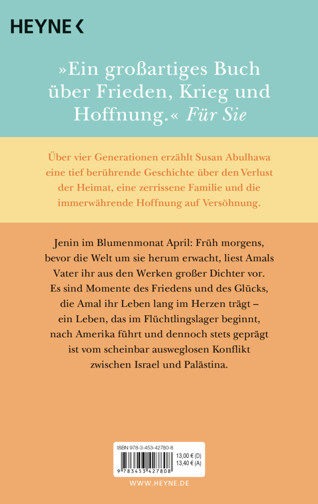 Jenin im Blumenmonat April: Frühmorgens, bevor die Welt um sie herum erwacht, liest Amals Vater ihr aus den Werken großer Dichter vor. Es sind Momente des Friedens und des Glücks, die Amal ihr Leben lang im Herzen trägt ein Leben, das im Flüchtlingslager begin...