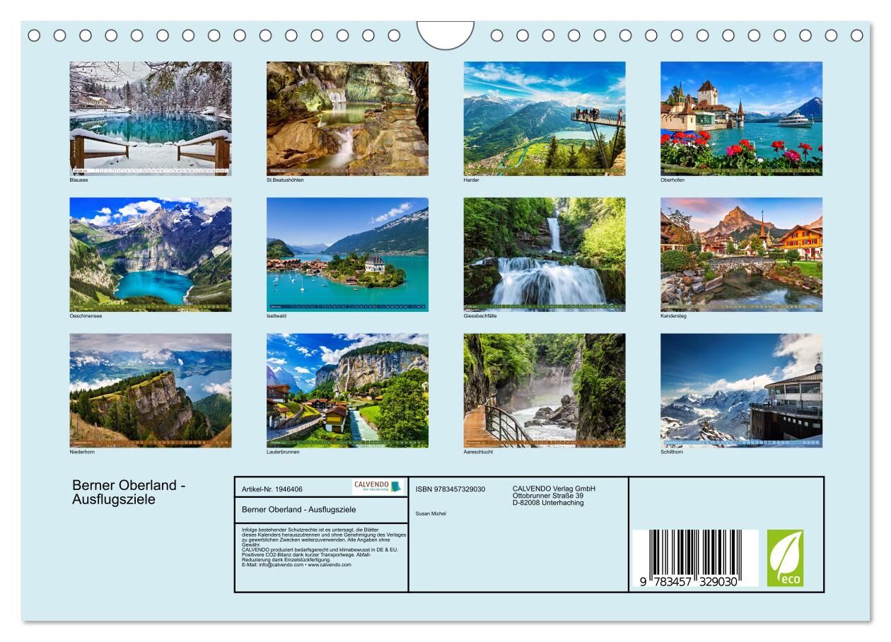 Erleben Sie die Schönheit des Berner Oberlands das ganze Jahr über! Dieser exklusiver Kalender präsentiert Ihnen Monat für Monat atemberaubende Ausflugsziele, von majestätischen Alpenlandschaften bis zu idyllischen Seen und charmanten Dörfern. Lassen Sie sich ...
