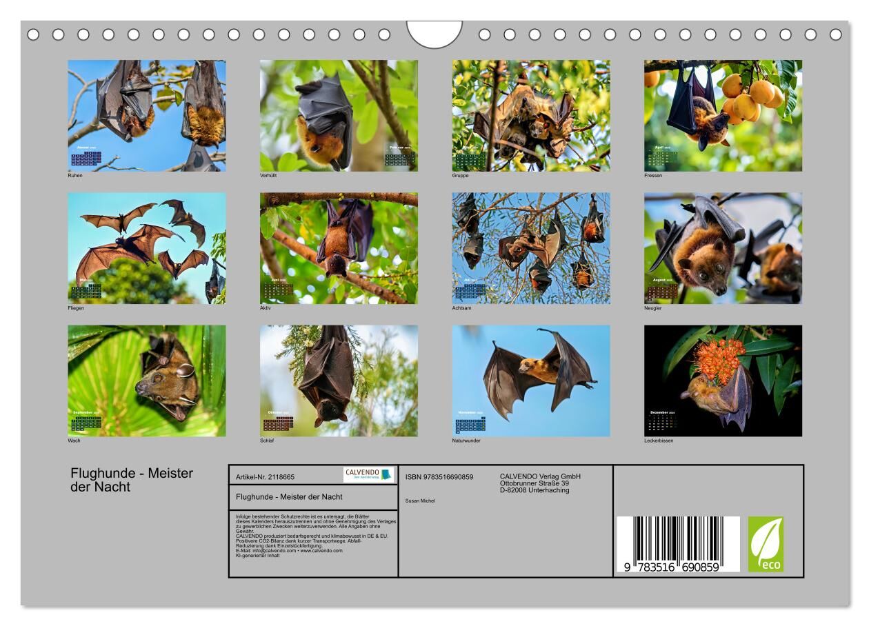 Entdecke die geheimnisvolle Welt der größten Fledertiere der Erde! Mit majestätischen Flügeln gleiten Flughunde lautlos durch die Dunkelheit und faszinieren mit ihrer Eleganz und Einzigartigkeit. Dieser Kalender bringt dir Monat für Monat beeindruckende Aufnah...