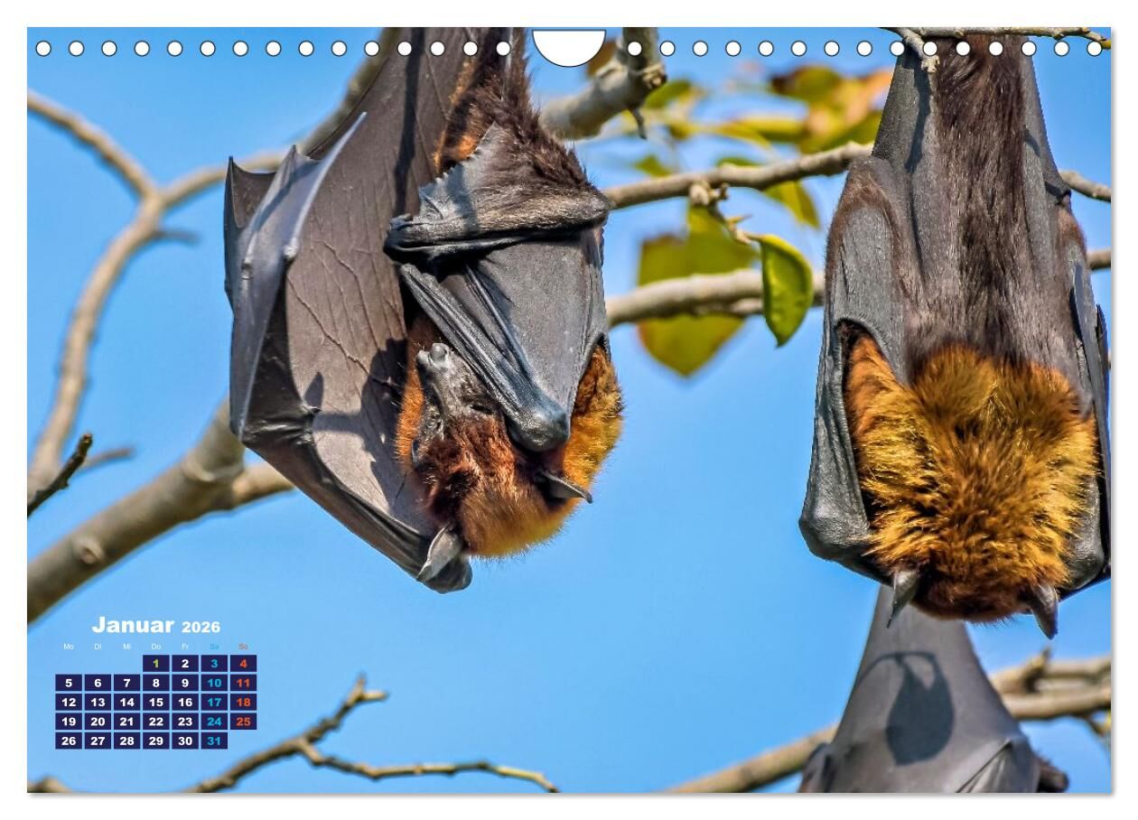 Flughunde - Meister der Nacht (Wandkalender 2026 DIN A4 quer), CALVENDO Monatskalender
