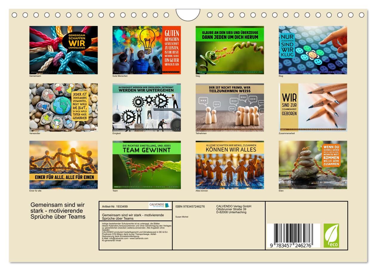 "Gemeinsam sind wir stark" Der Kalender für echte Teamplayer! Dieser inspirierende Kalender begleitet dich durch das Jahr mit motivierenden Sprüchen über Zusammenhalt, Teamgeist und die Kraft des Miteinanders. Perfekt für Büros, Vereine oder einfach alle, die ...