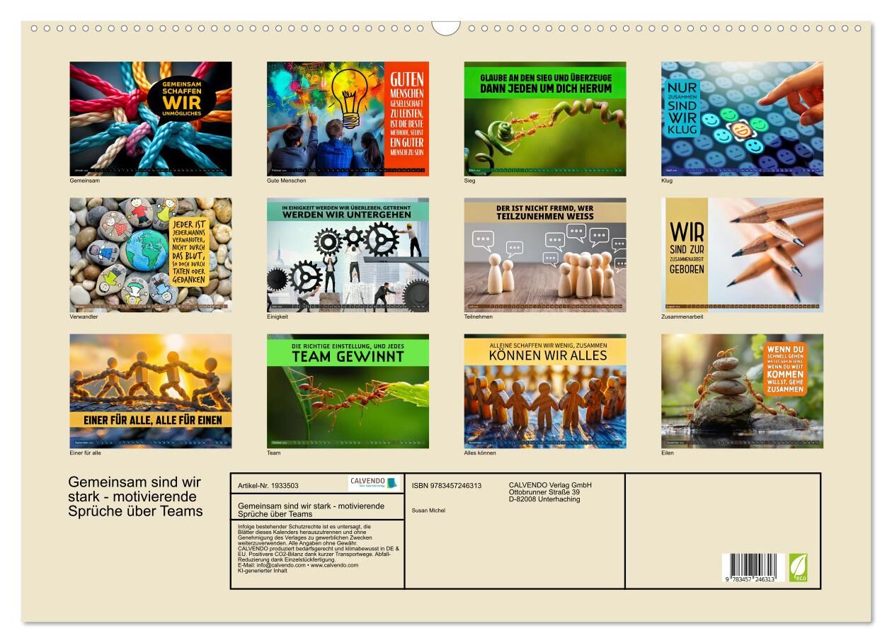 Gemeinsam sind wir stark - motivierende Sprüche über Teams (Wandkalender 2026 DIN A2 quer), CALVENDO Monatskalender