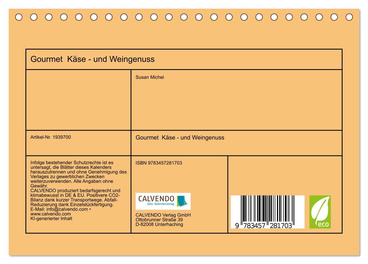 Gourmet Käse - und Weingenuss (Tischkalender 2026 DIN A5 quer), CALVENDO Monatskalender