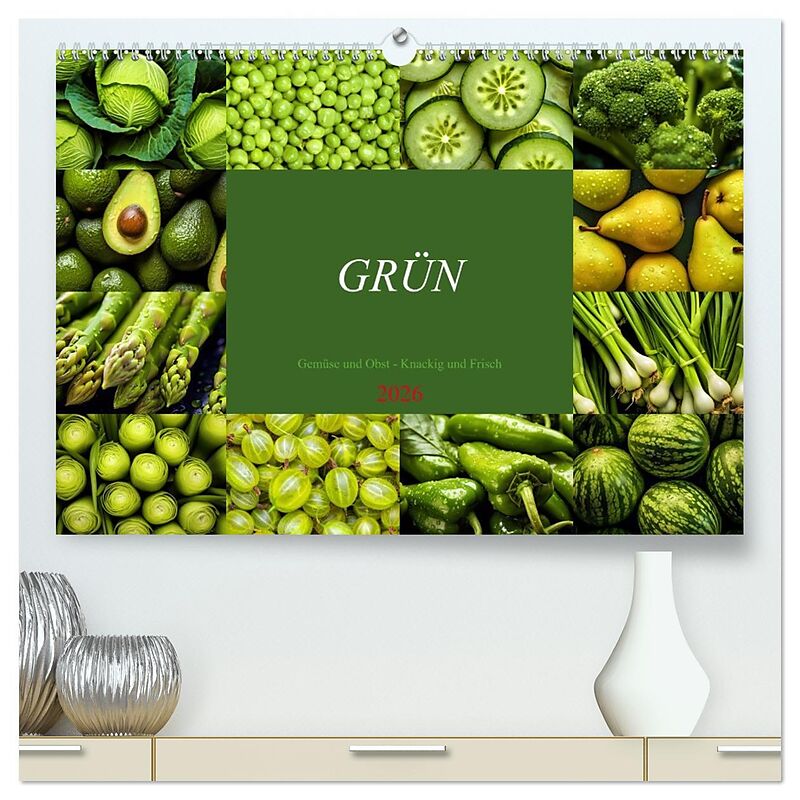 GRÜN - Gemüse und Obst - Knackig und Frisch (hochwertiger Premium Wandkalender 2026 DIN A2 quer), Kunstdruck in Hochglanz