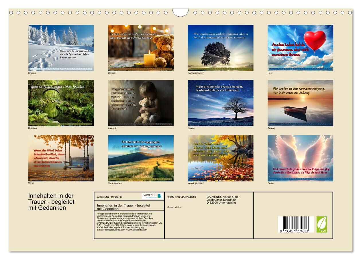 Innehalten in der Trauer - begleitet mit Gedanken (Wandkalender 2026 DIN A3 quer), CALVENDO Monatskalender