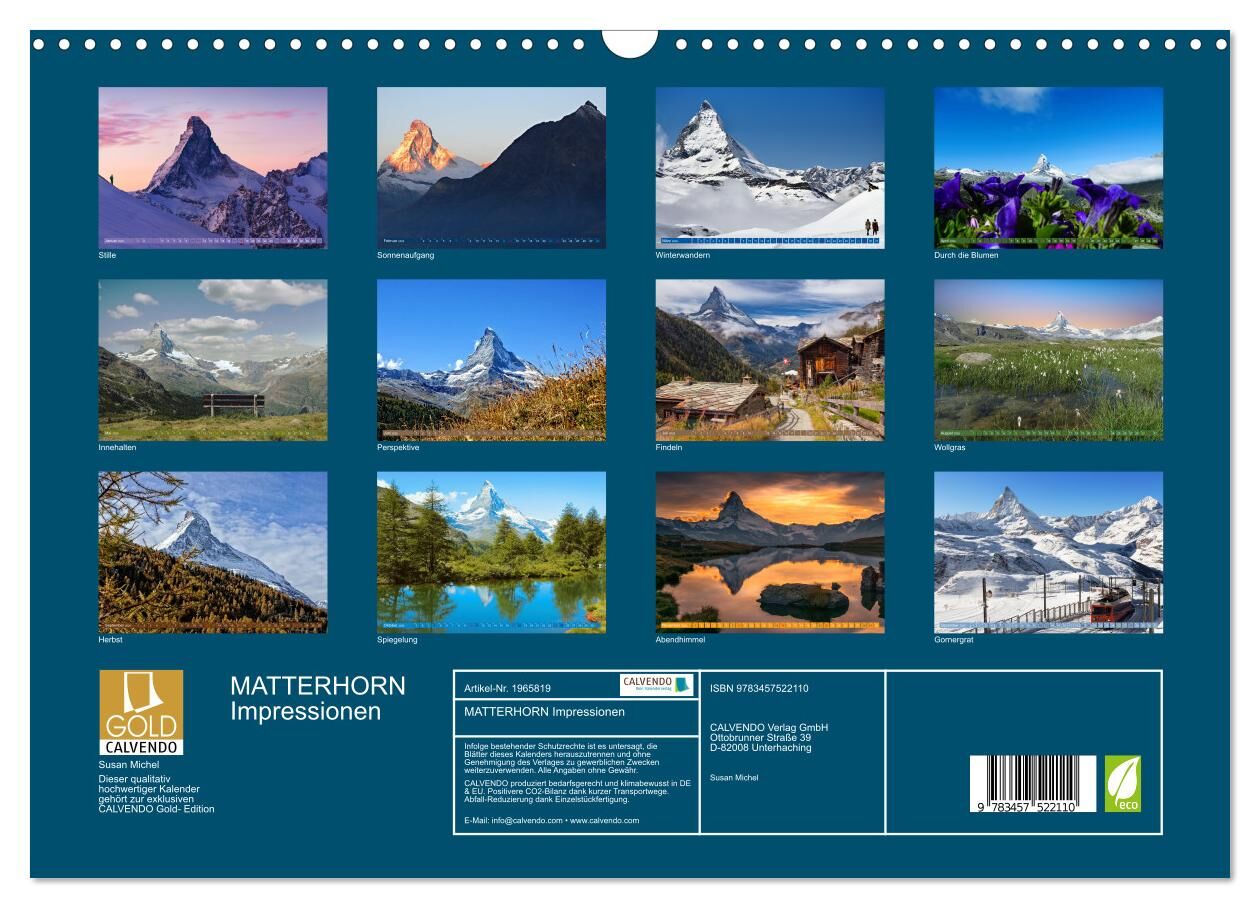 MATTERHORN Impressionen (Wandkalender 2026 DIN A3 quer), CALVENDO Monatskalender