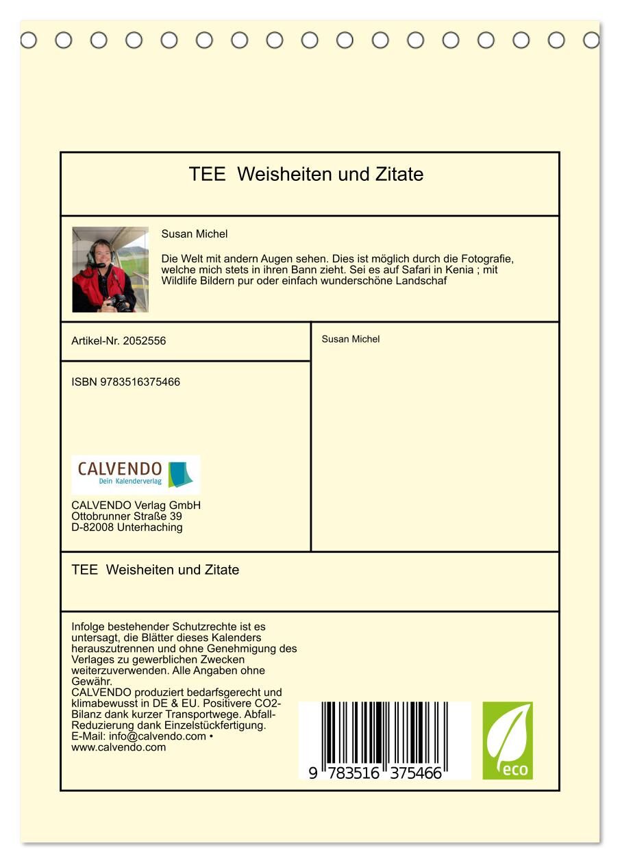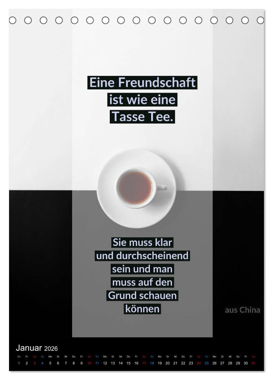 TEE Weisheiten und Zitate (Tischkalender 2026 DIN A5 hoch), CALVENDO Monatskalender