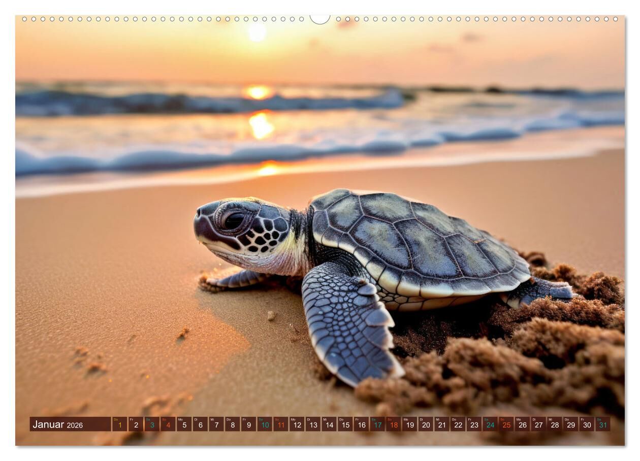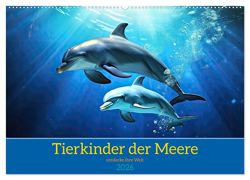 Tierkinder der Meere - entdecke ihre Welt (Wandkalender 2026 DIN A2 quer), CALVENDO Monatskalender