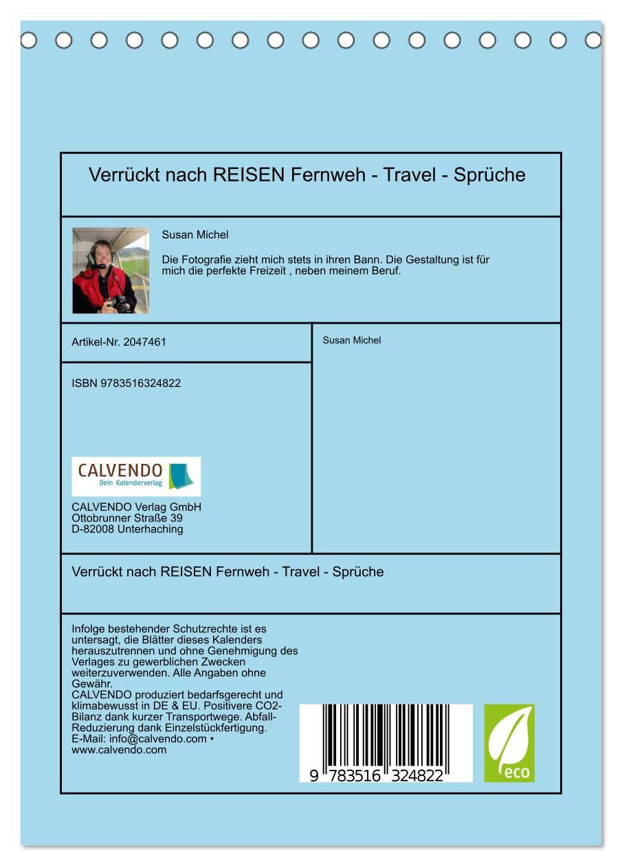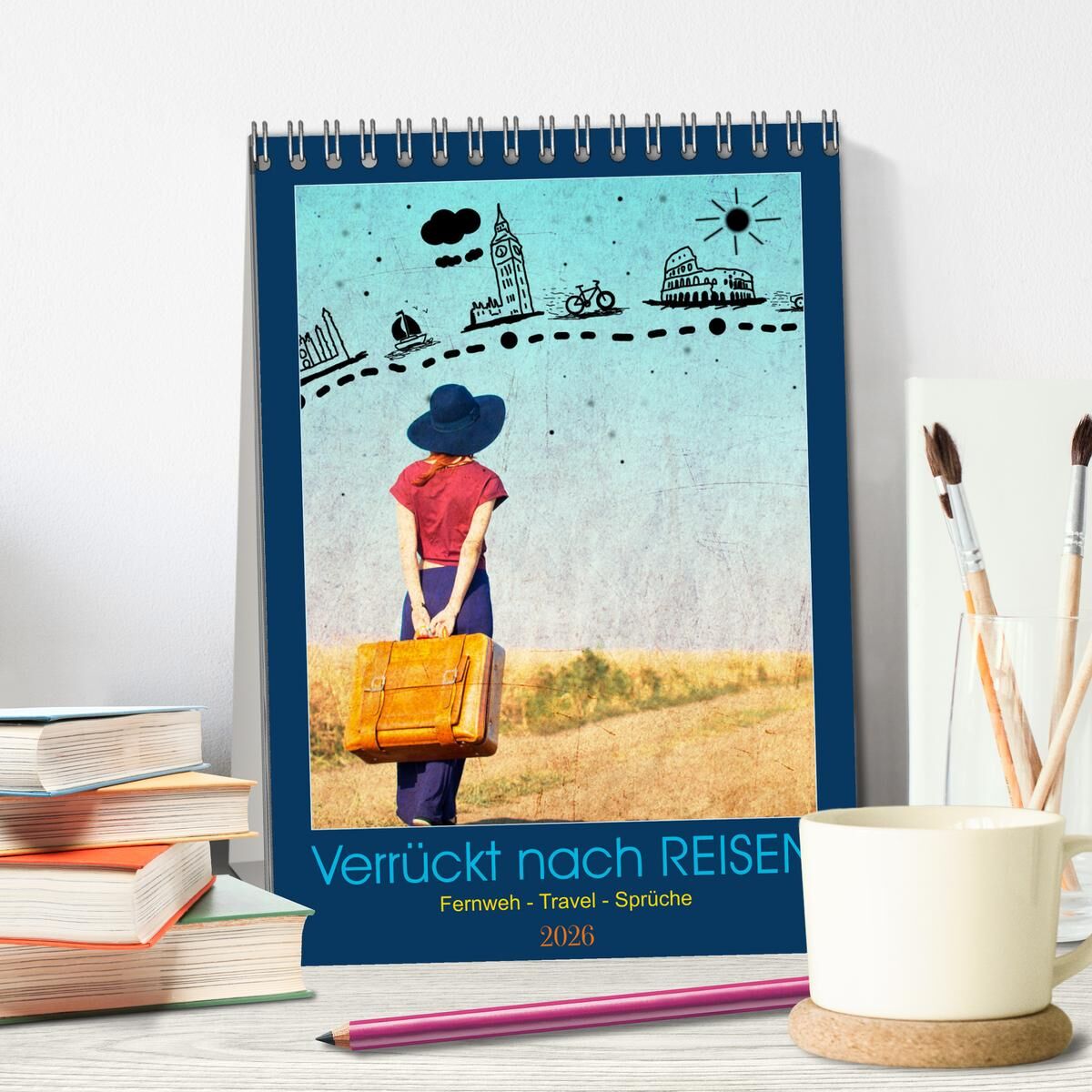 Verrückt nach REISEN Fernweh - Travel - Sprüche (Tischkalender 2026 DIN A5 hoch), CALVENDO Monatskalender