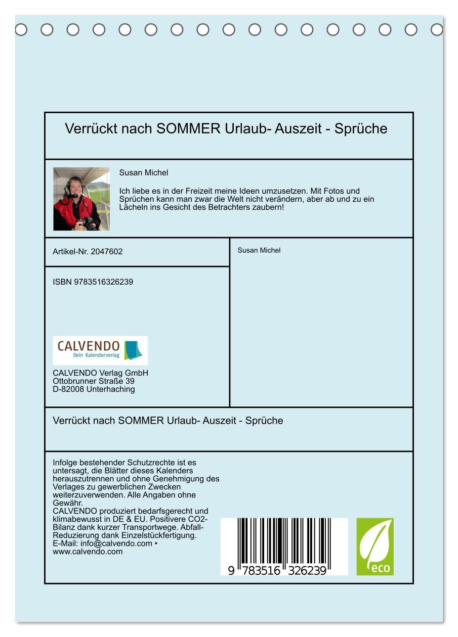 Verrückt nach SOMMER Urlaub- Auszeit - Sprüche (Tischkalender 2026 DIN A5 hoch), CALVENDO Monatskalender