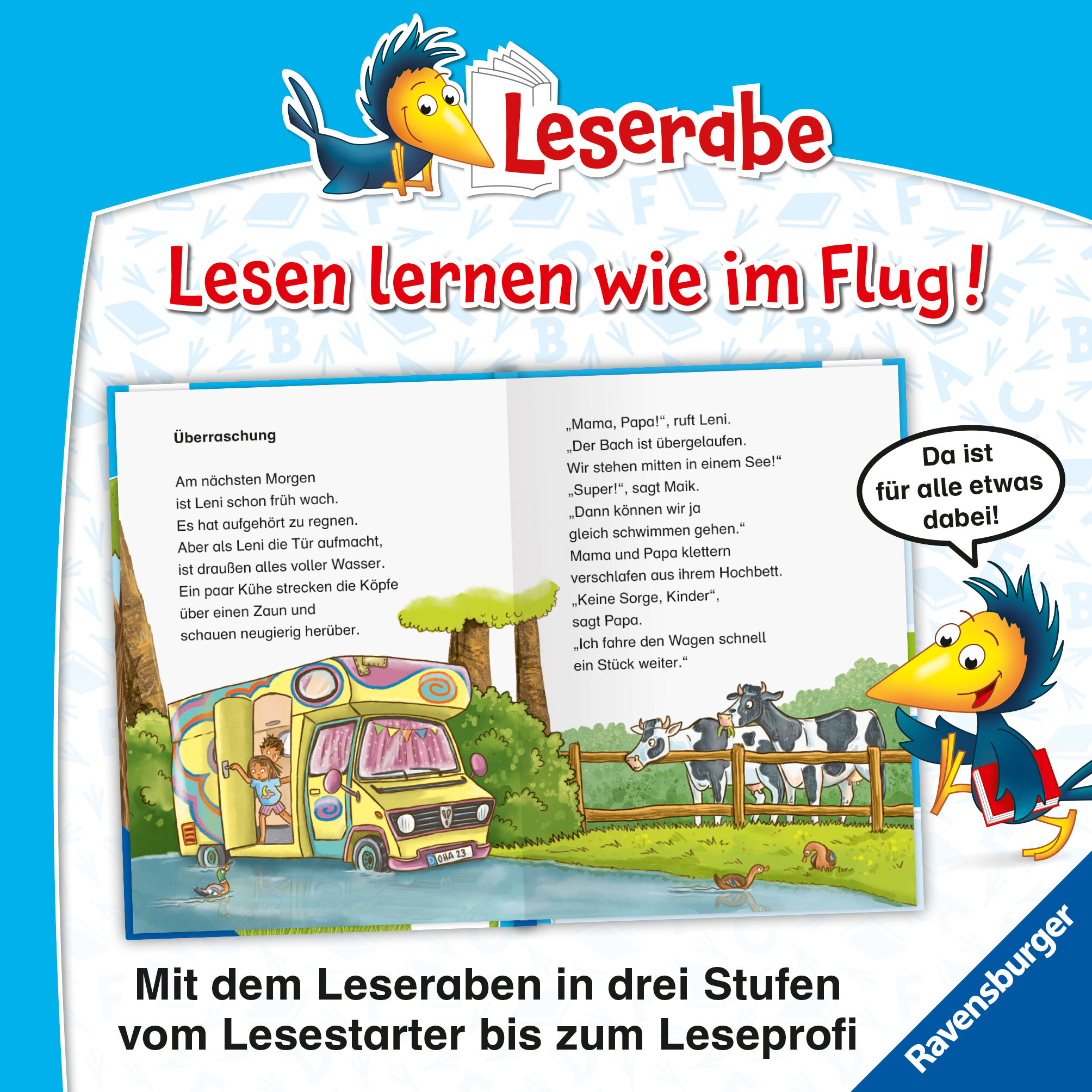 Lesen lernen wie im Flug! Familie Klein mietet sich ein kunterbuntes Wohnmobil und fährt in den ersten Camping-Urlaub. Doch schon nach der ersten Nacht springt das Auto nicht mehr an und auch sonst erleben Leni, Maik, Mama und Papa einige Überraschungen. Aber ...