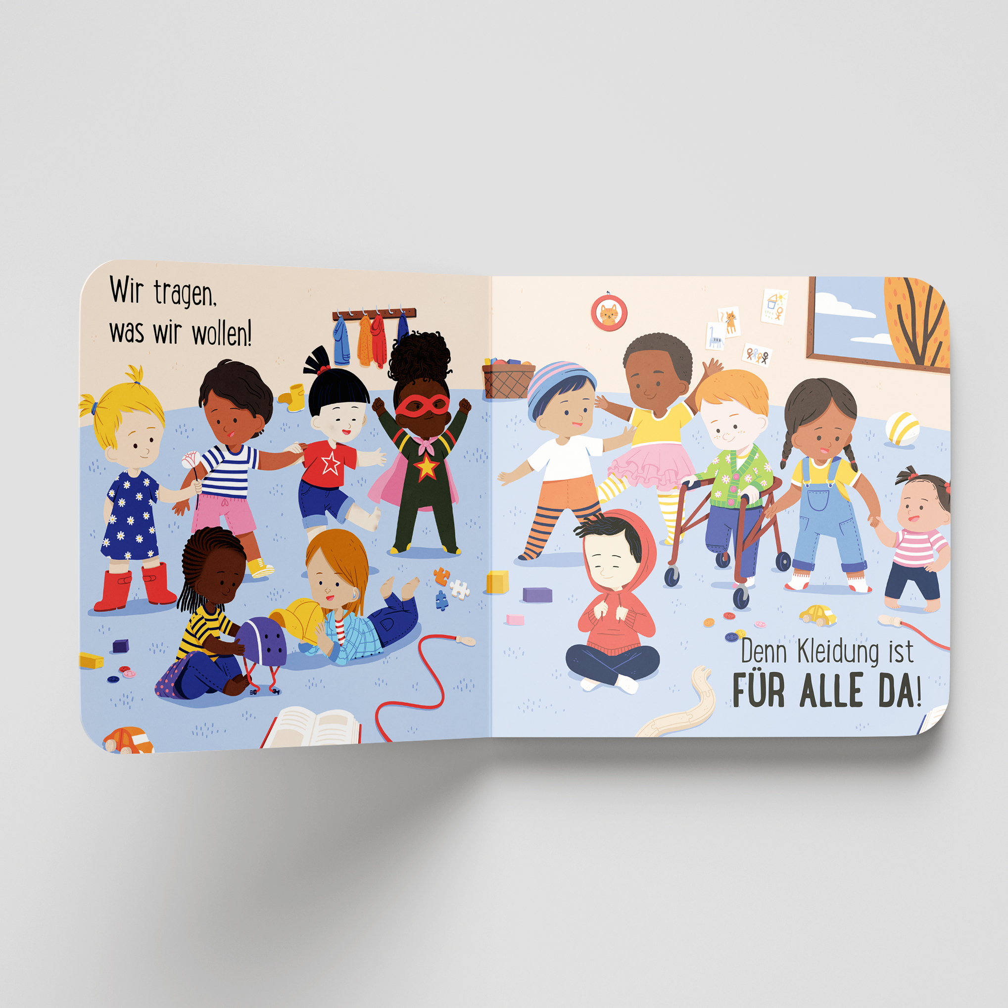 Sind Kleider nur was für Mädchen? Sind Baseballmützen nur was für Jungs? Dieses zauberhafte Pappbilderbuch räumt schon für Kleinkinder mit überholten Rollenbildern auf. "Kleidung ist für alle da" lädt Kinder ein, sich unabhängig von ihrem Geschlecht frei zu en...