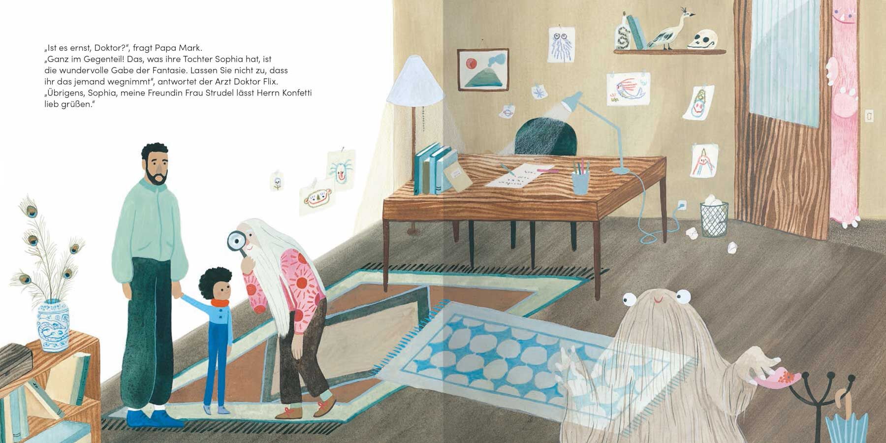 Sophia kann mit ihrer blühenden Fantasie Berge versetzen. Bei ihren Abenteuern wird sie immer von ihrem imaginären Freund begleitet: Herr Konfetti. Gemeinsam verwandeln sie Regentage in Sonnentage, verzaubern die langweiligsten Orte in beeindruckende Dschunge...