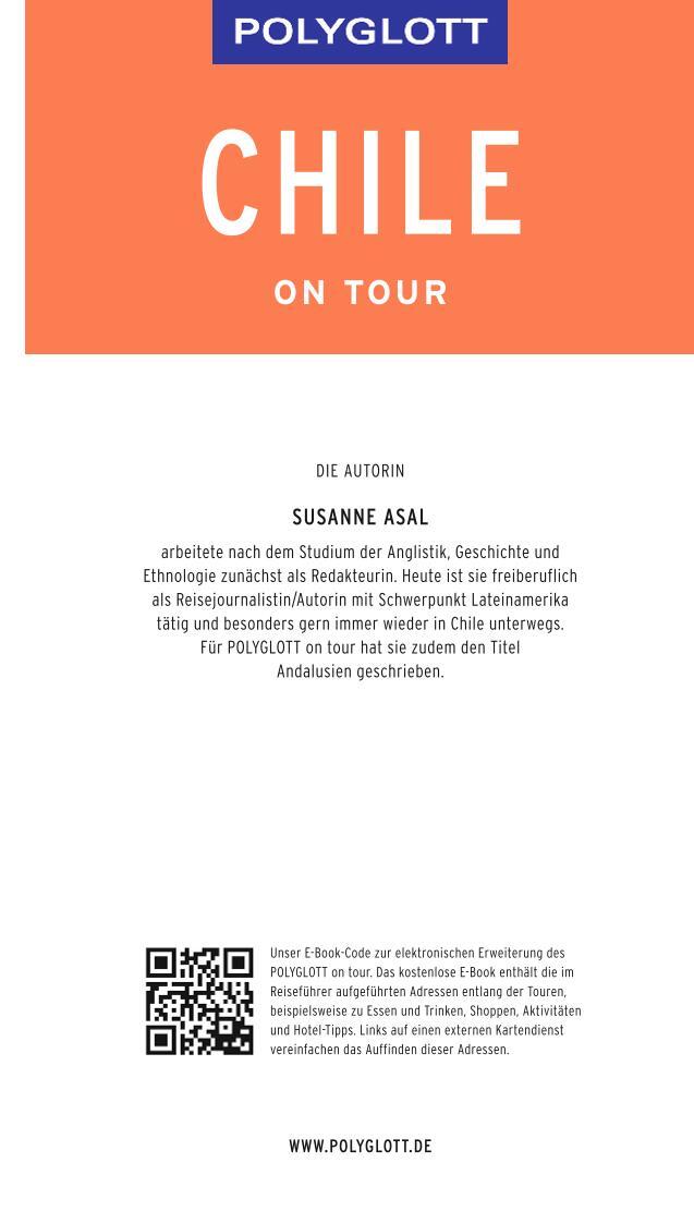 Persönlich & mittendrin! Entspanntes und unabhängiges Reisen mit dem Reiseführer POLYGLOTT on tour Chile, der Sie direkt ins Leben der Locals eintauchen lässt. Die Autorin Susanne Asal führt auf abwechslungsreichen Touren zu spannenden und außergewöhnliche...