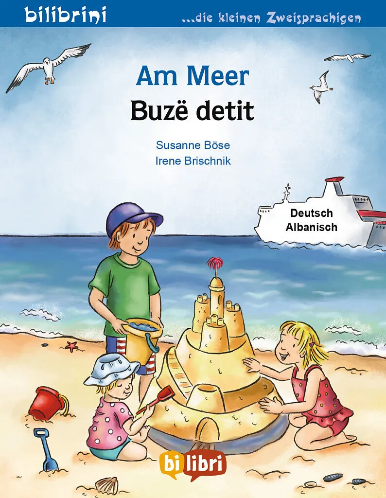 Am Meer , aus der Reihe bilibrini die kleinen Zweisprachigen , ist ein zweisprachiges Kinderbuch auf Deutsch und Albanisch für Kinder ab 3 Jahren. Leo und Klara sind mit ihren Eltern und ihrer kleiner Schwester Eva im Urlaub. Sie spielen am Strand, schwimmen ...