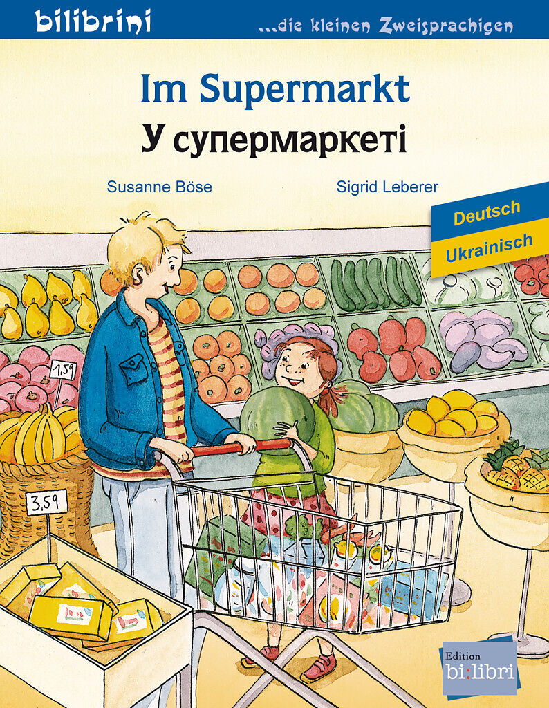 Im Supermarkt , aus der Reihe bilibrini die kleinen Zweisprachigen , ist ein zweisprachiges Kinderbuch auf Deutsch und Ukrainisch für Kinder ab 3 Jahren. Heute geht Marie mit ihrer Mutter einkaufen. Äpfel, Brot, Marmelade, Zucker - es gibt so viele Lebensmitt...