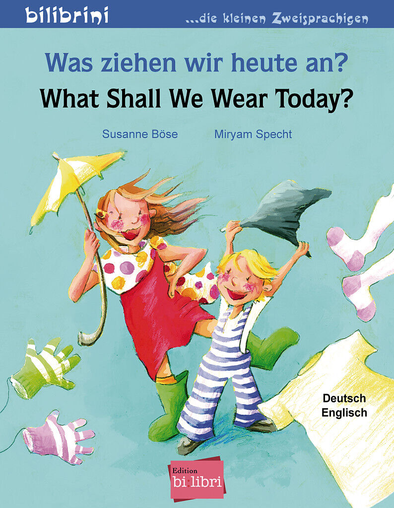 Was ziehen wir heute an? , aus der Reihe bilibrini die kleinen Zweisprachigen , ist ein zweisprachiges Kinderbuch auf Deutsch und Englisch für Kinder ab 3 Jahren. Heute wird das Wetter wechselhaft. Was sollen Sarah und David bloß anziehen? Farbenfrohe Illustr...