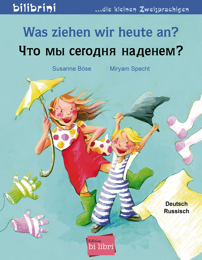 Was ziehen wir heute an? , aus der Reihe bilibrini die kleinen Zweisprachigen , ist ein zweisprachiges Kinderbuch auf Deutsch und Russisch für Kinder ab 3 Jahren. Heute wird das Wetter wechselhaft. Was sollen Sarah und David bloß anziehen? Farbenfrohe Illustr...
