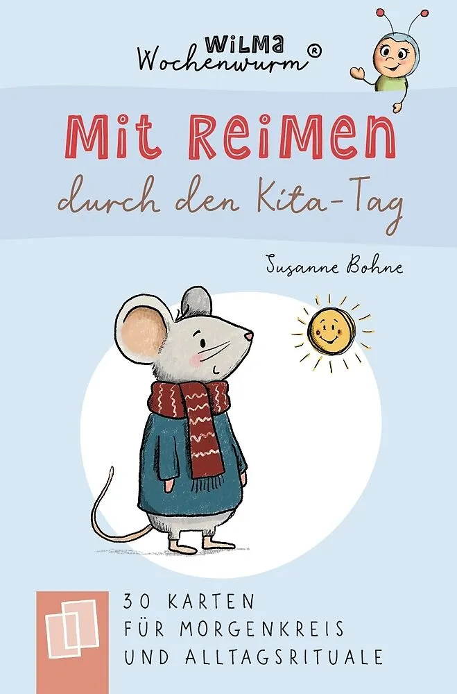 Kartenset mit Reimen für den Einsatz in Kita, Krippe und Tagespflege Ob Tischsprüche vor dem Essen, ein Reim zur Begrüßung oder ein Impuls für den Morgenkreis die Karten rund um Wilma Wochenwurm® bringen Sprachförderung und Struktur auf liebevolle Weise in de...