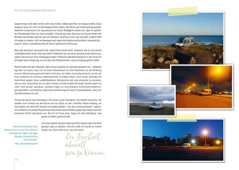 Wie traue ich mich, alleine mit dem Wohnmobil loszufahren? Was muss ich beachten? Wie gehe ich mit Ängsten um und woher kommt der Mut? In den Geschichten ihrer Roadtrips erzählt die Autorin von den Erfahrungen, alleine unterwegs zu sein. Sie gibt konkrete Wohn...