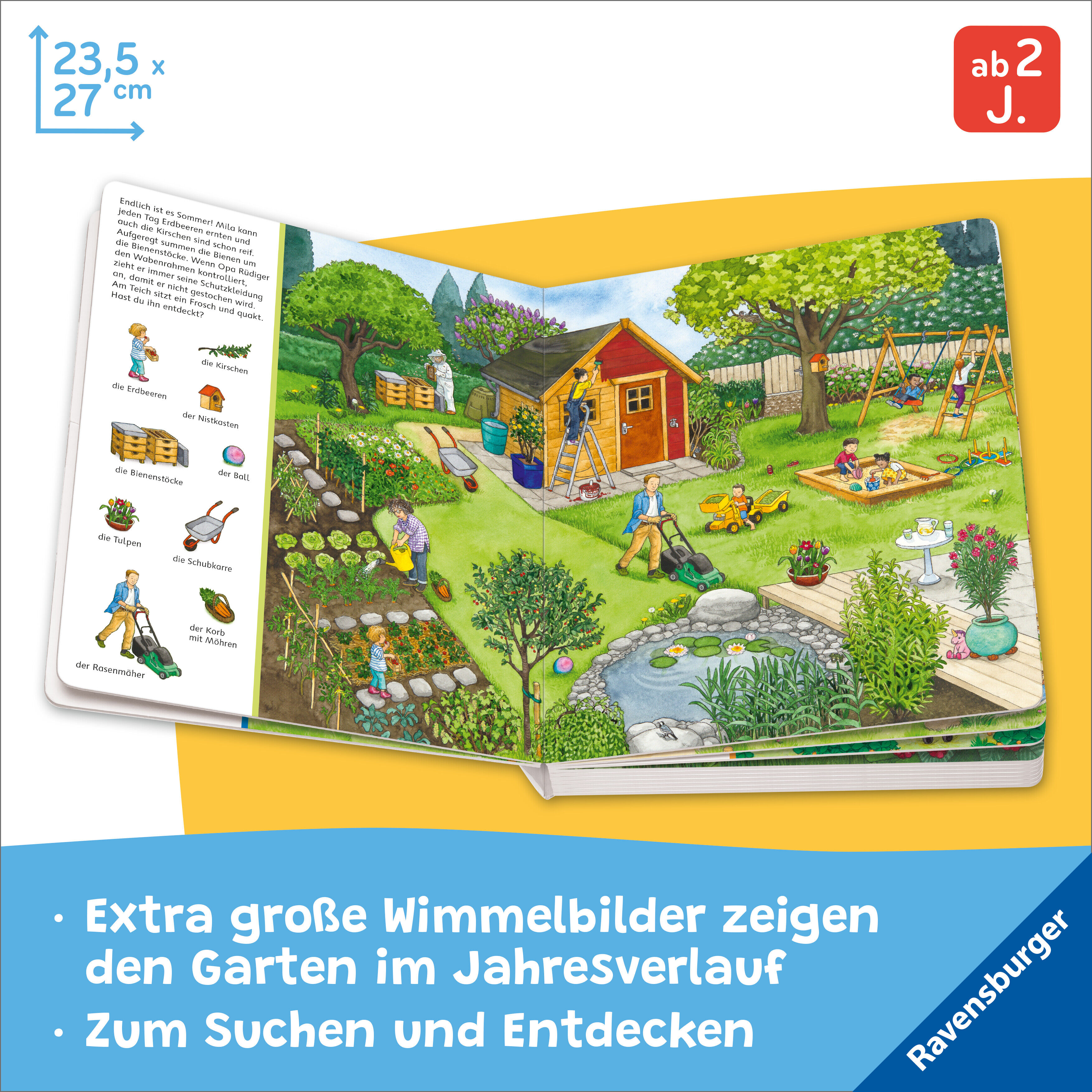 Entdecke die Natur mit "Sachen suchen" in unserem Garten Komm mit in den Garten! Auf 11 großen, naturgetreuen Wimmelbildern wird der Garten für Kinder lebendig. Wie heißen die Blumen, das Obst und Gemüse und die Bäume, die im Garten wachsen? Welche Tiere leben...