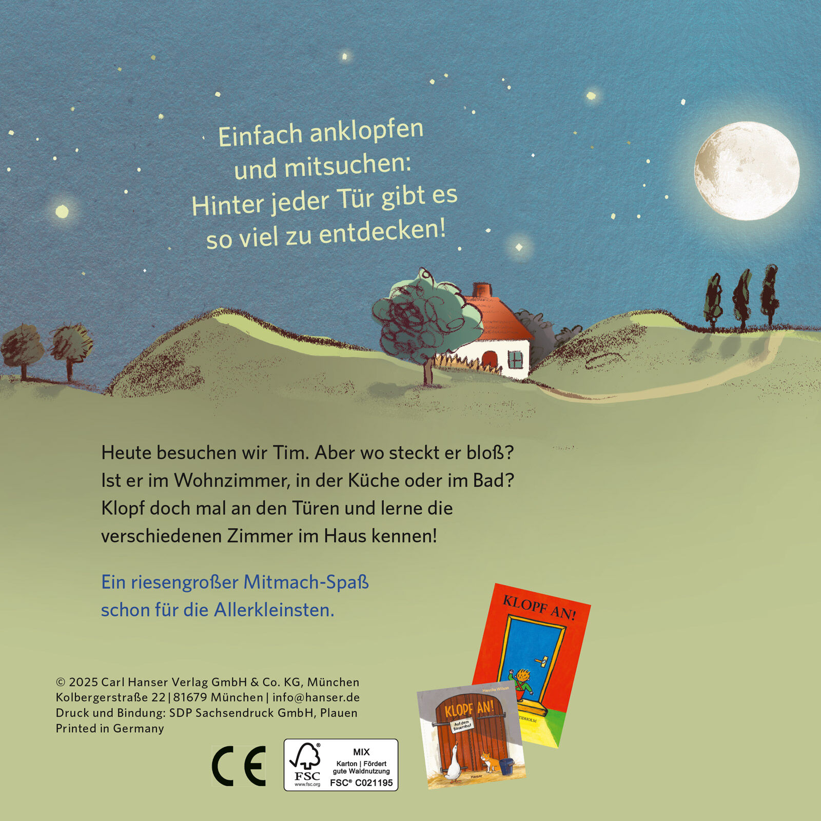 Endlich: Der Mitmachklassiker »Klopf an!« von Anna-Clara Tidholm geht weiter! Anklopfen, mitsuchen und mitklatschen. Illustriert von Susanne Göhlich In dieser interaktiven Pappbilderbuch-Reihe gibt es schon für die Allerkleinsten Geheimnisse zu lüften und viel...