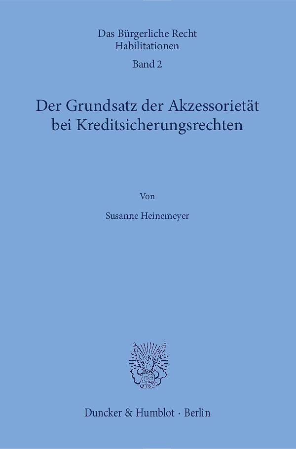 Die Akzessorietät, eines der grundlegenden Prinzipien des Kreditsicherungsrechts, bezeichnet die Abhängigkeit eines Sicherungsrechts wie etwa der Bürgschaft, der Hypothek oder des Pfandrechts von der gesicherten Forderung. In der Arbeit wird die Entwicklung di...