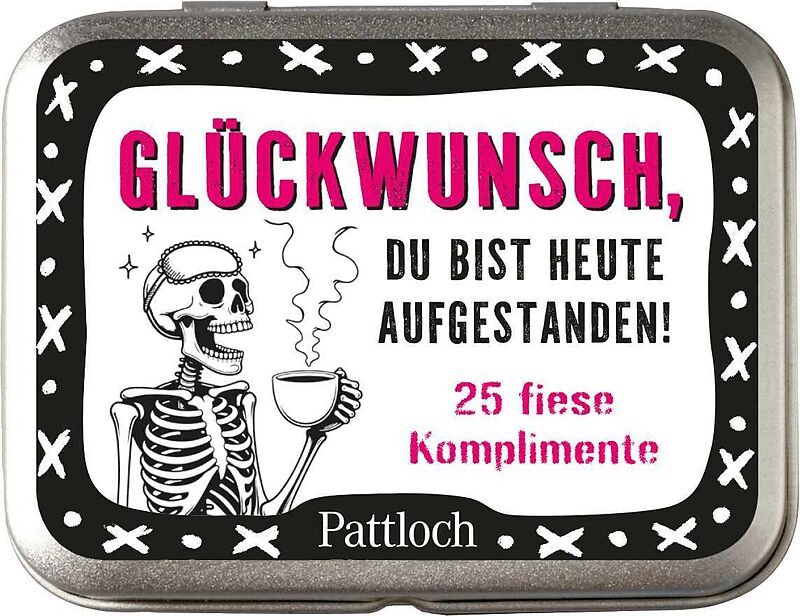 Das perfekte Geschenk für deine liebsten Feinde! Manchmal lässt sich Zuneigung nicht besser ausdrücken als mit einer ordentlichen Prise schwarzem Humor. Dann kann diese Metalldose mit 25 fiesen Komplimenten gezückt und dein Gegenüber mit liebevollen Gemeinhei...