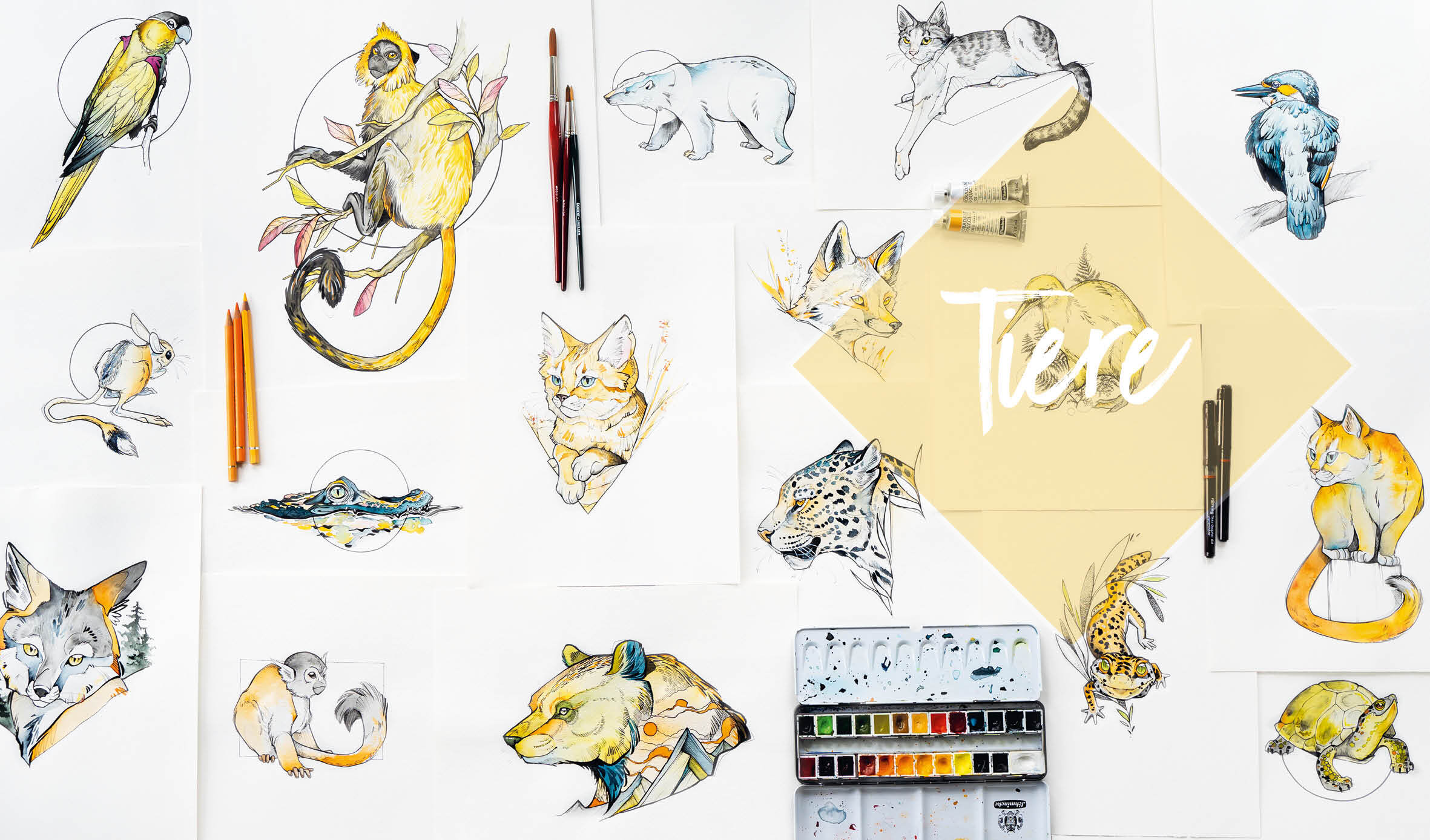 Animals 25 Tiere zeichnen mit Watercolor-Effekt