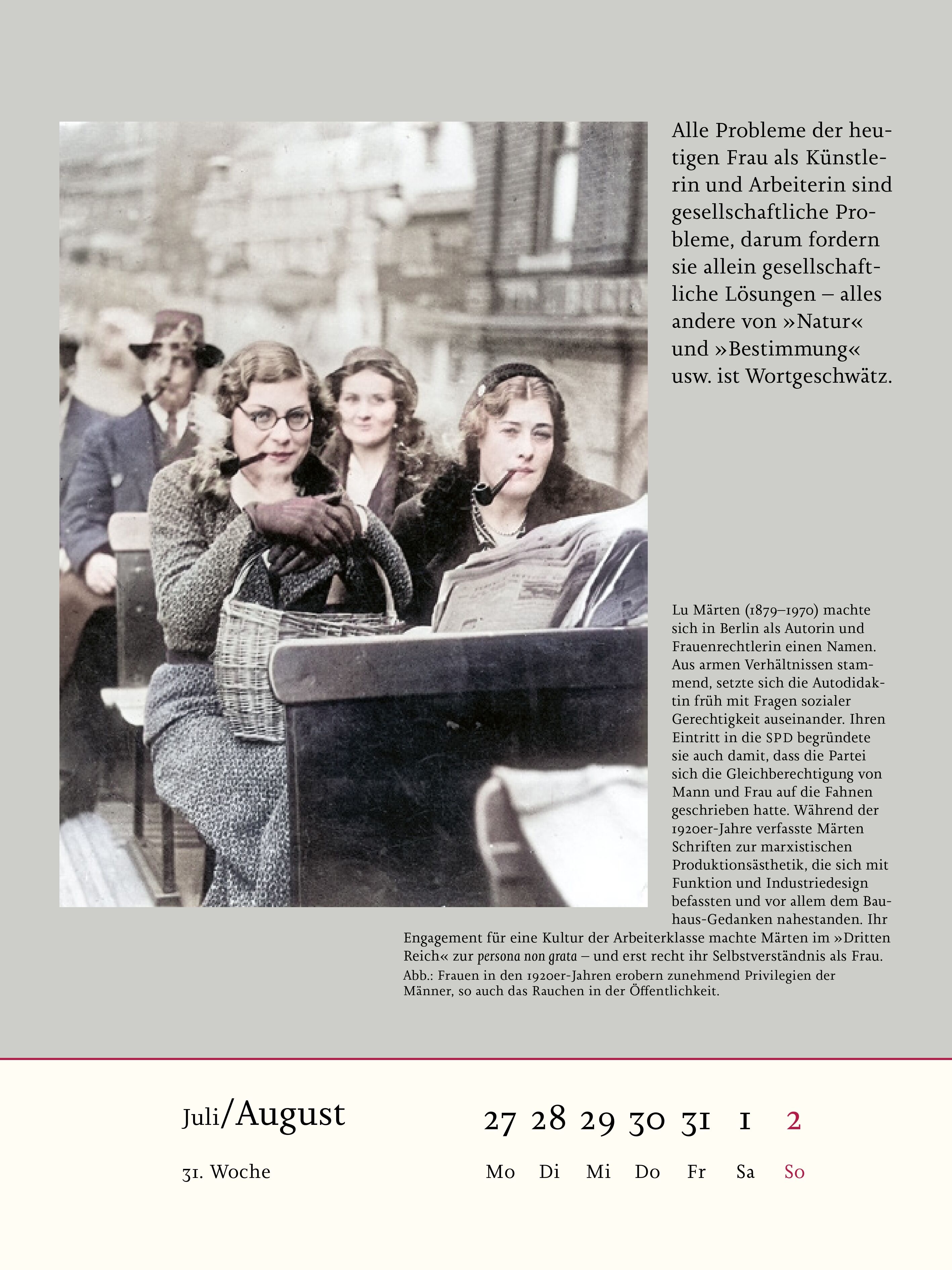 Der Klassiker unter den Frauenkalendern! 53 mal Frauenpower zum Thema »Frauen einfach genial!« Woche für Woche ein faszinierendes Stück weiblicher Kulturgeschichte mit Zitaten und Biografien von Ingeborg Bachmann, Irmgard Keun, Karin Michaëlis, Hannah Arendt, ...