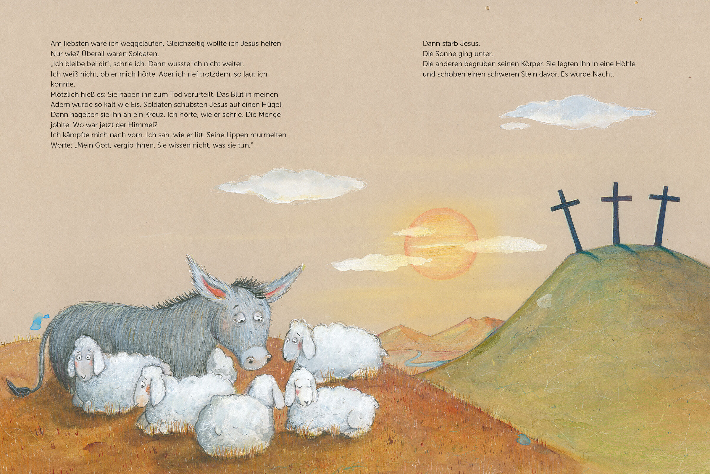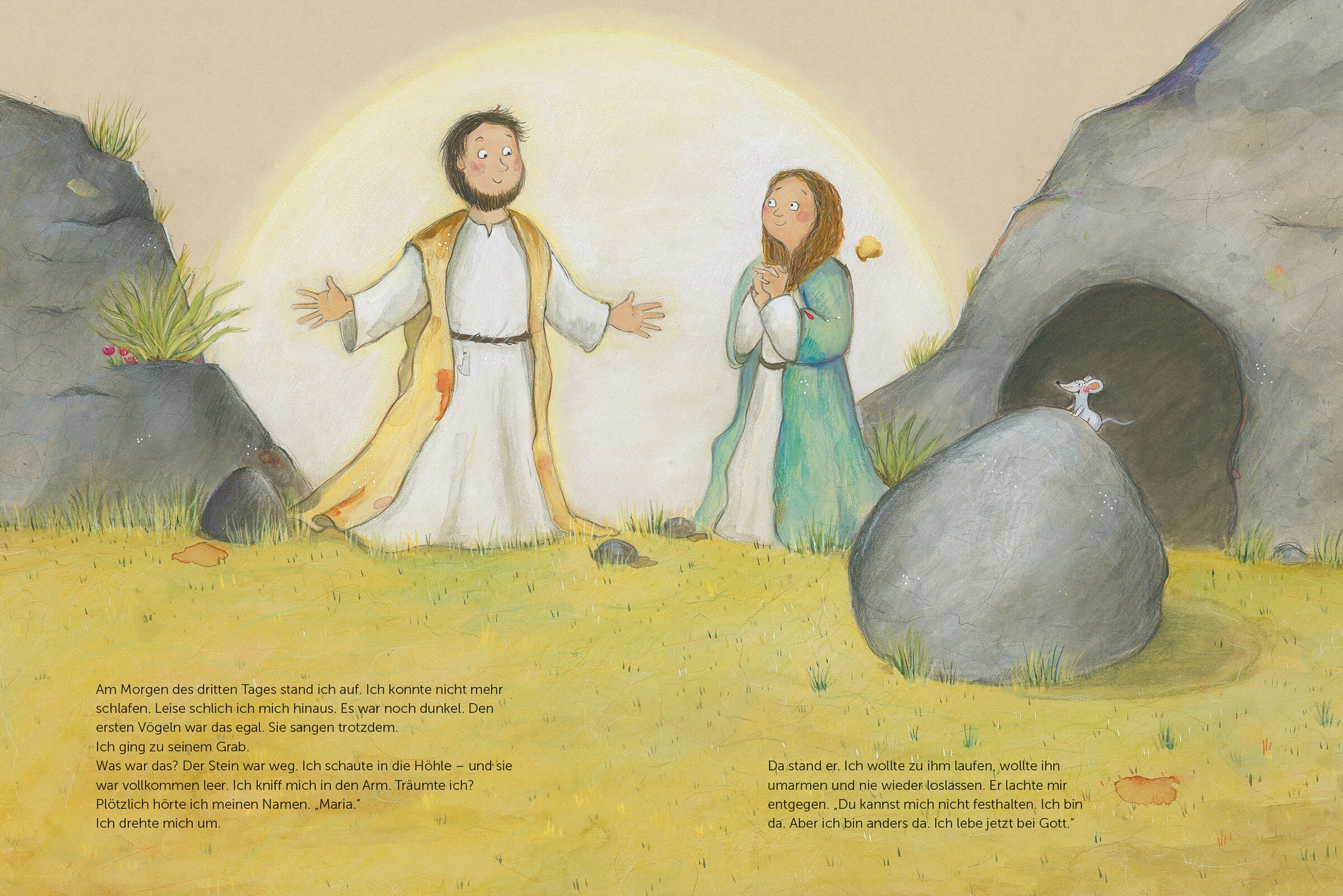 Warmherzig und hoffnungsfroh! Was war das? Der Stein war weg. Ich schaute in die Höhle und sie war vollkommen leer. Plötzlich hörte ich meinen Namen. Mein Herz wurde ganz warm, ich sah Jesus vor mir, wie er gelacht und geredet hatte. Der Wind fuhr durch die Bä...