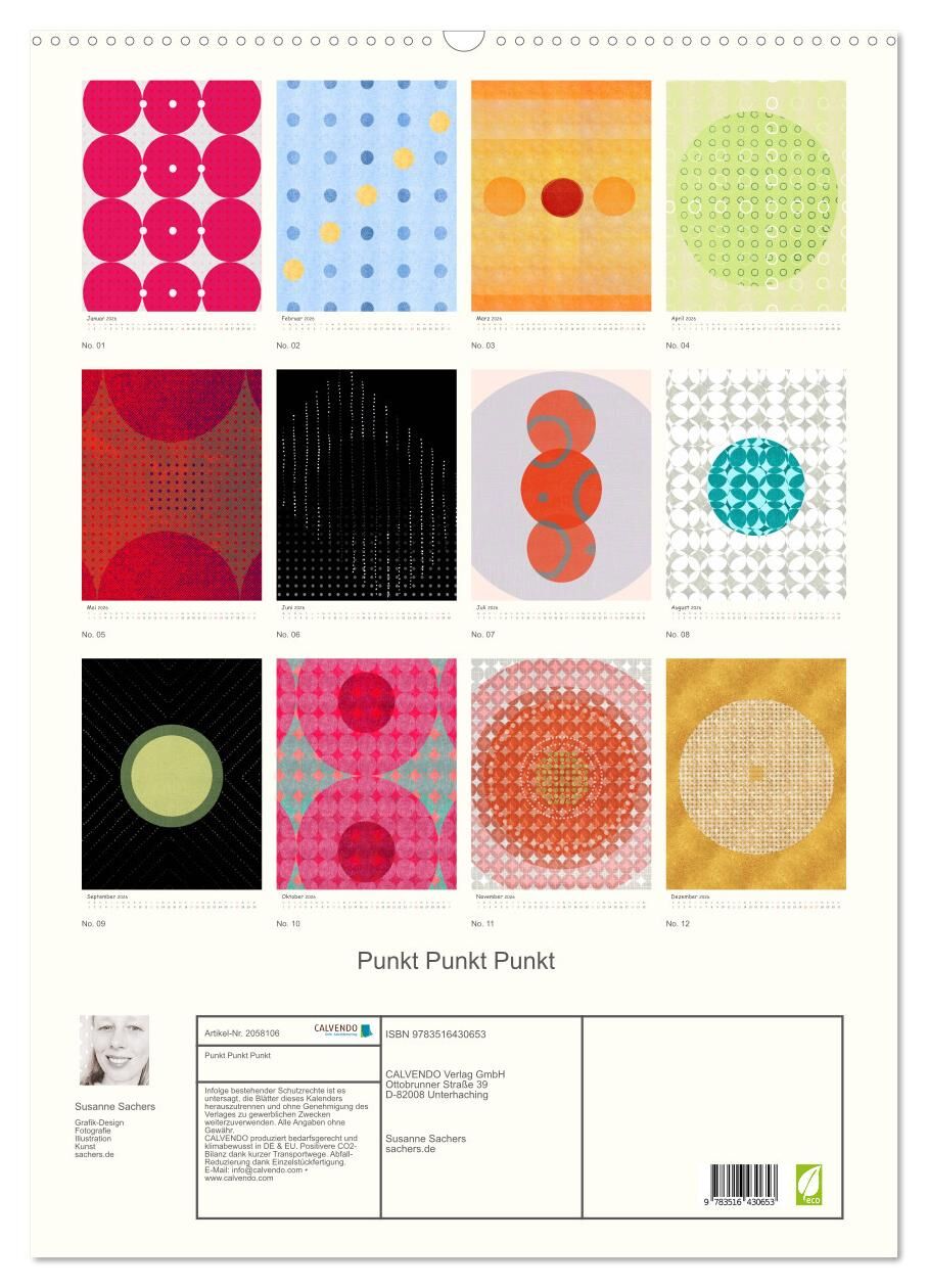 Die Hamburger Grafikerin und Künstlerin Susanne Sachers interpretiert in zwölf inspirierenden Werken das Thema "Punkte". ... Farbenfroh, klar und modern.