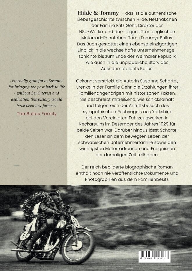 Hilde & Tommy - das ist die authentische Liebesgeschichte zwischen Hilde, Nesthäkchen der Familie Fritz Gehr, Direktor der NSU-Werke, und dem legendären englischen Motorrad-Rennfahrer Tom Tommy" Bullus. Das Buch gestattet einen ebenso einzigartigen Einblic...