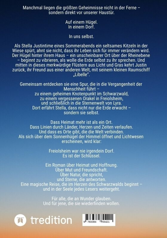 Manchmal liegen die größten Geheimnisse nicht in der Ferne sondern direkt vor unserer Haustür. Auf einem Hügel. In einem Dorf. In uns selbst. Als Stella Justintime eines Sommerabends ein seltsames Kitzeln in der Wiese spürt, ahnt sie nicht, dass ihr Leben sich...