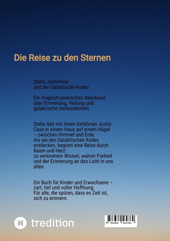Ein Buch, das Herzen öffnet für Kinder, Erwachsene und die neue Zeit Stella Justintime und der Galaktische Kodex Rückkehr der Sterne ist ein spirituell-poetisches Kinderbuch, das die Welt in einer Zeit des Wandels berührt. Es ist eine Reise durch Fantasie, Her...
