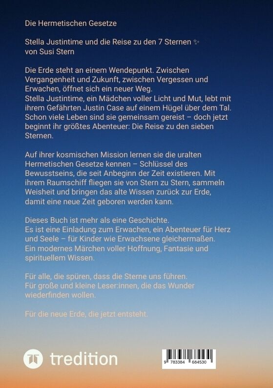 Stella Justintime und die Reise zu den 7 Sternen von Susi Stern Die Erde steht an einem Wendepunkt. Zwischen Vergangenheit und Zukunft, zwischen Vergessen und Erwachen, öffnet sich ein neuer Weg. Stella Justintime, ein Mädchen voller Licht und Mut, lebt mit ih...