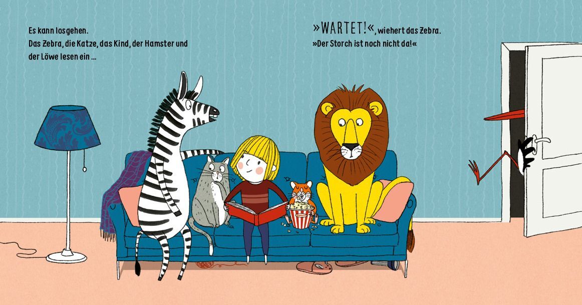 Kommt, wir lesen ein Buch!", ruft das Kind und schon sitzen alle auf dem Sofa: Zebra, Katze, Kind, Hamster, Löwe. Es kann losgehen. Wartet!" wiehert das Zebra, der Storch ist noch nicht da!" Da kommt er. So, jetzt kann es losgehen. Von wegen. Die Katze braucht...26 Kunden haben diesen Artikel kürzlich gekauft.