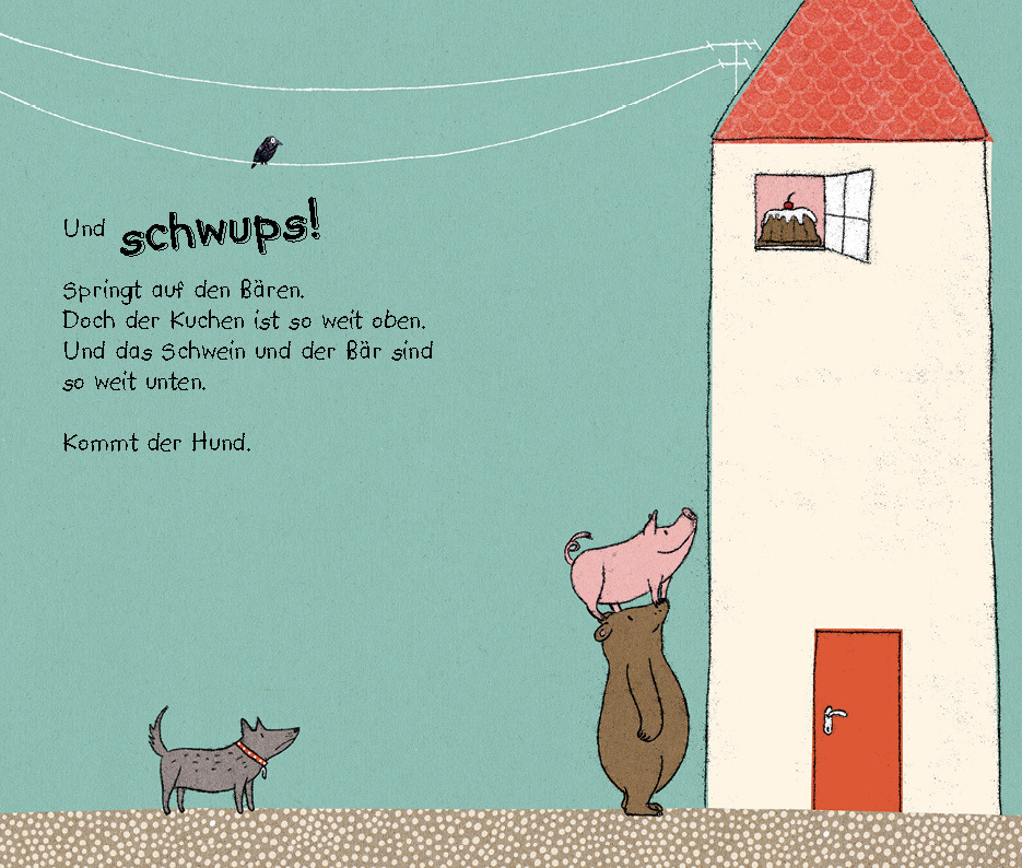 Wer kurze Beine hat, braucht viele Freunde! Eine lustige Räuberleiter auf dicken Pappseiten. Hier unten ist der Bär, er hat Hunger. Da oben ist der Kuchen. Schön, süß und unerreichbar. Diese Geschichte hat begonnen, bevor das Buch aufgeschlagen ist und schon d...